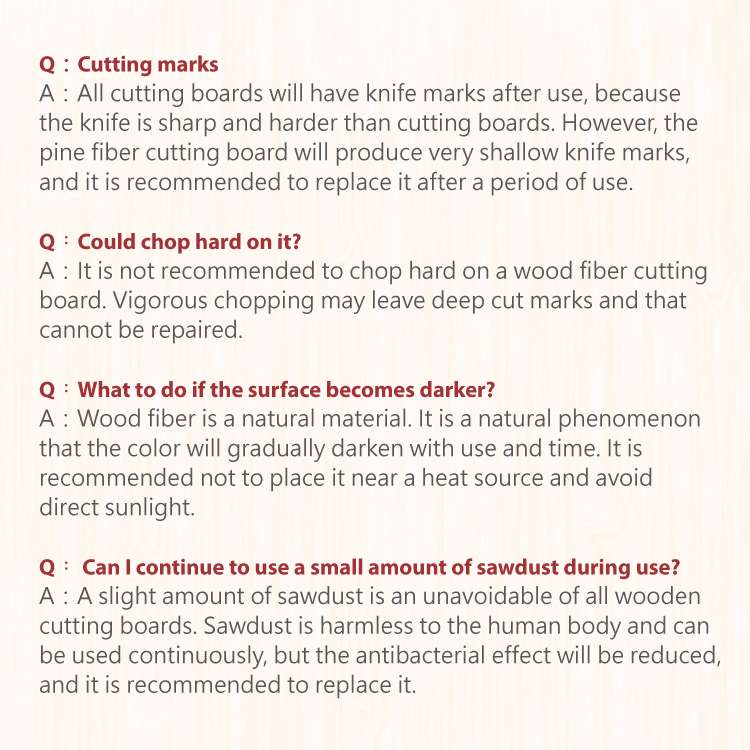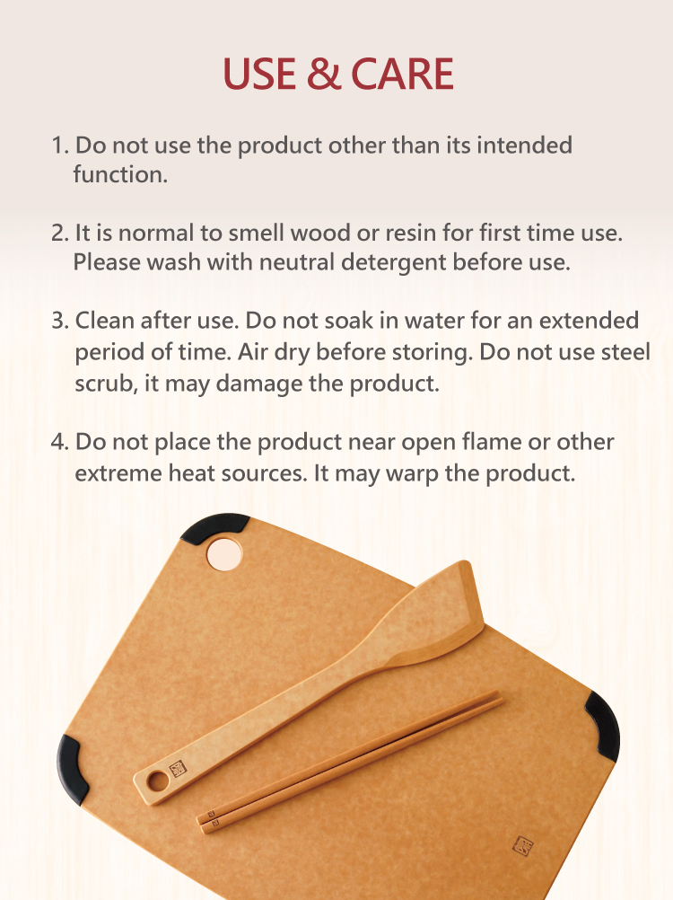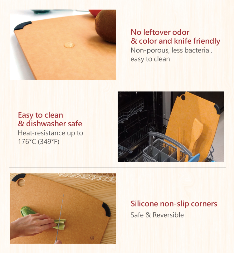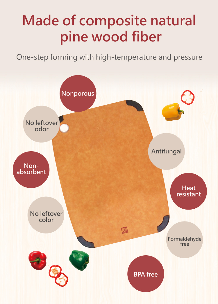 • Made of Pine fiber and shaped with high pressure. Non-porous and antibacterial.