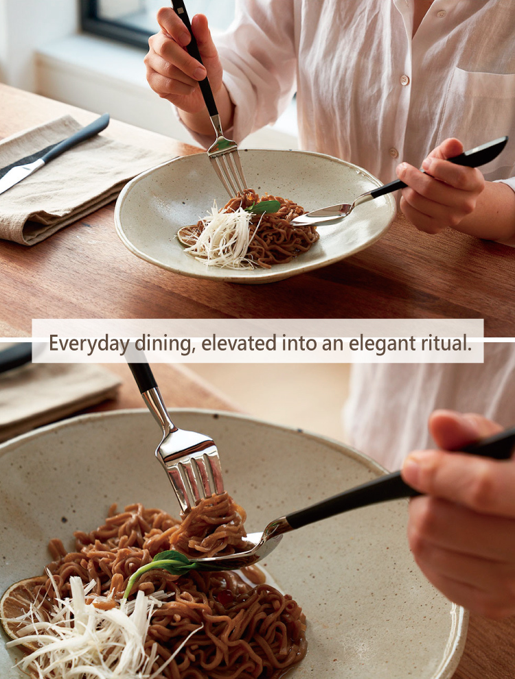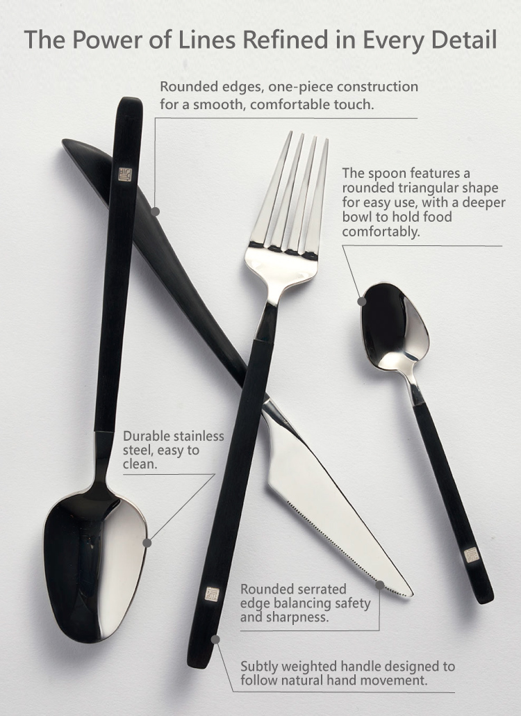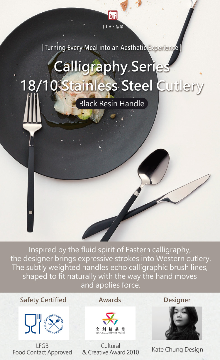 Inspired by the fluid spirit of Eastern calligraphy, the designer brings expressive strokes into Western cutlery.