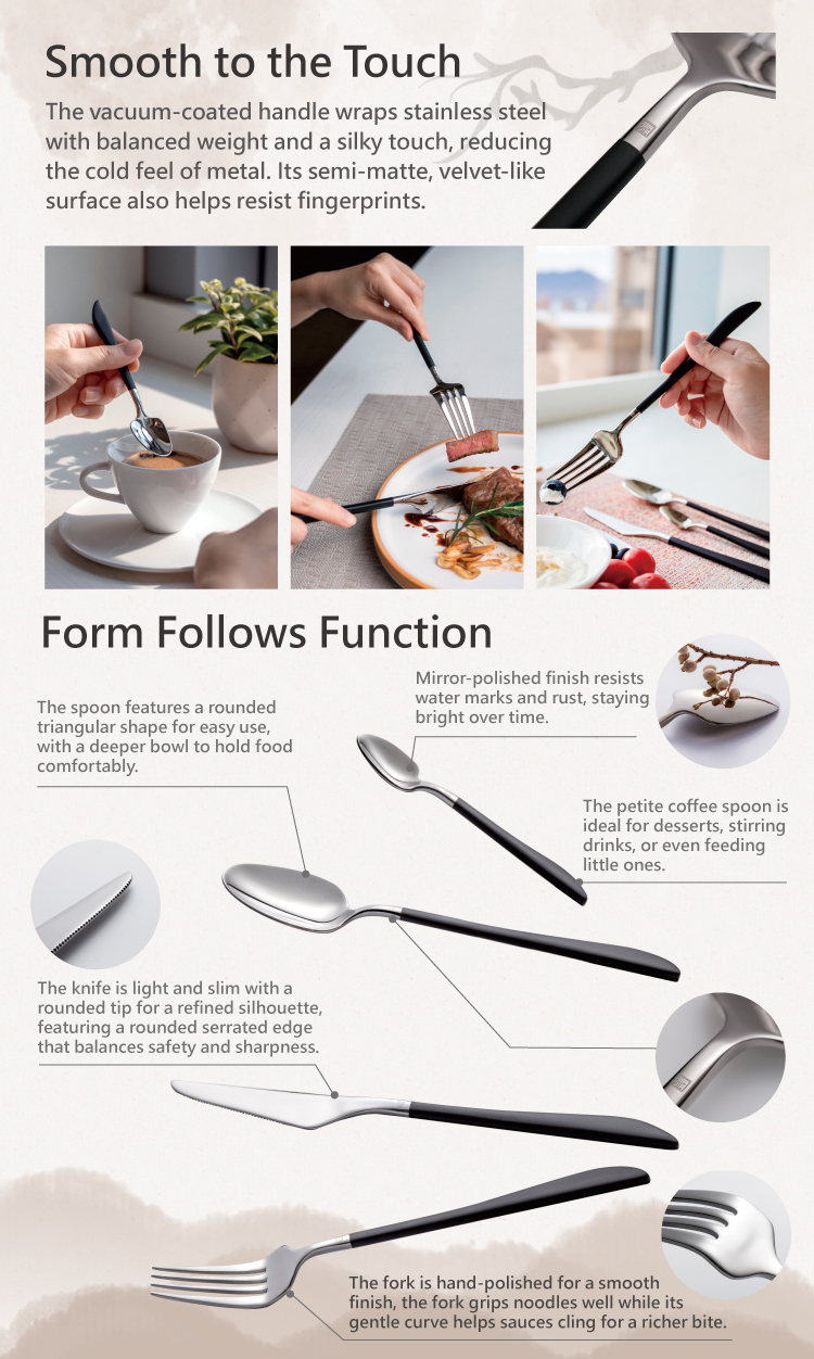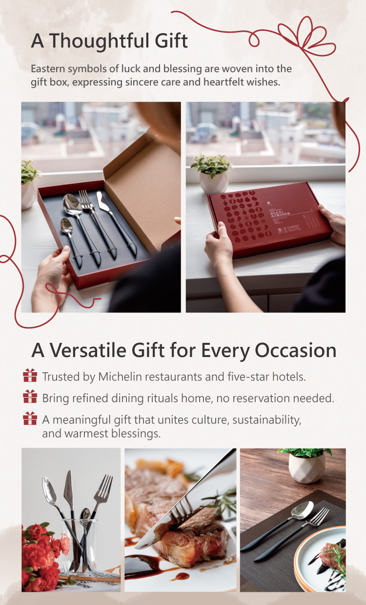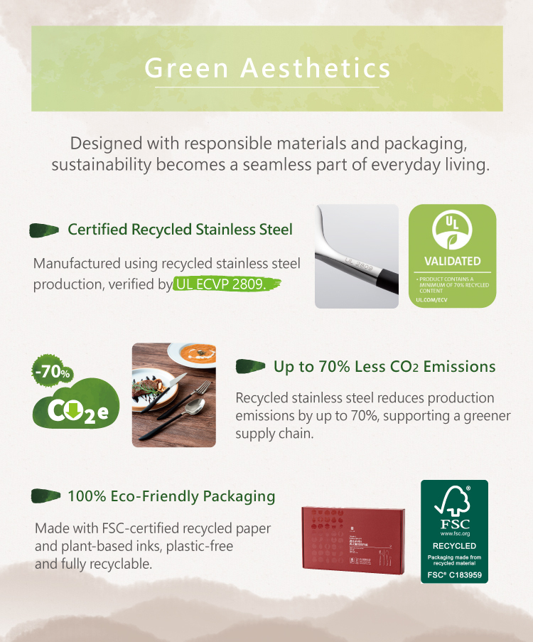 Crafted from recycled stainless steel, it unites aesthetics and sustainability, bringing a modern Eastern touch to the table.