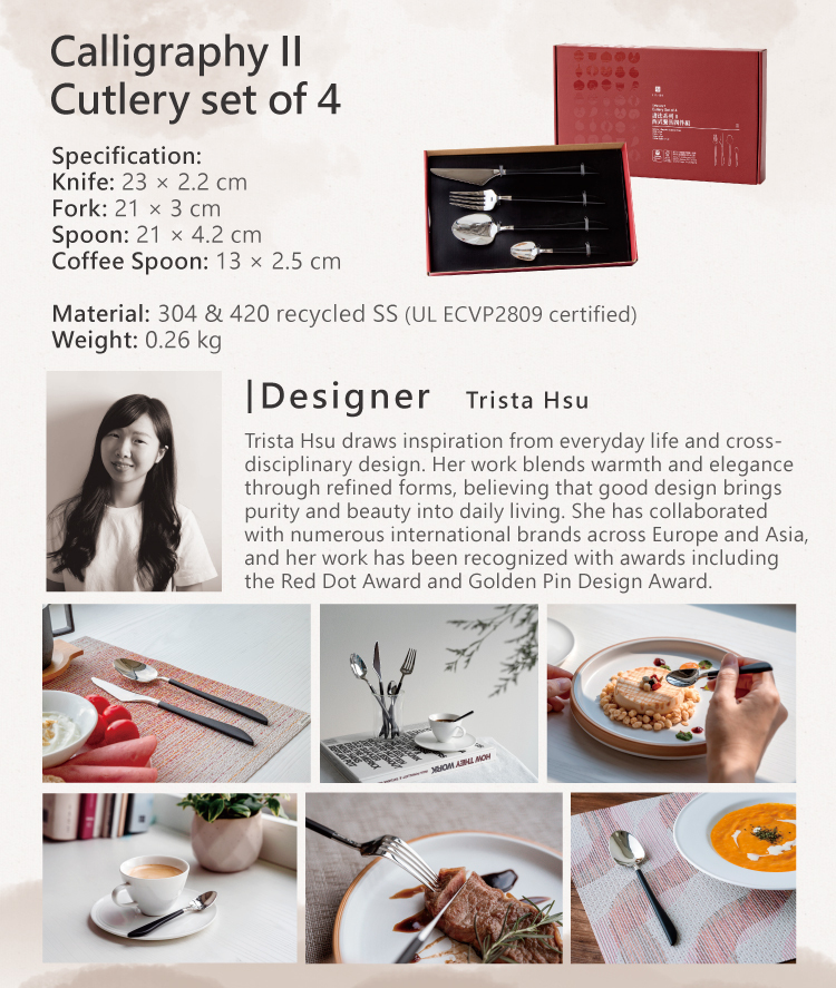 Calligraphy II Cutlery set of 4(Recycle Stainless Steel)