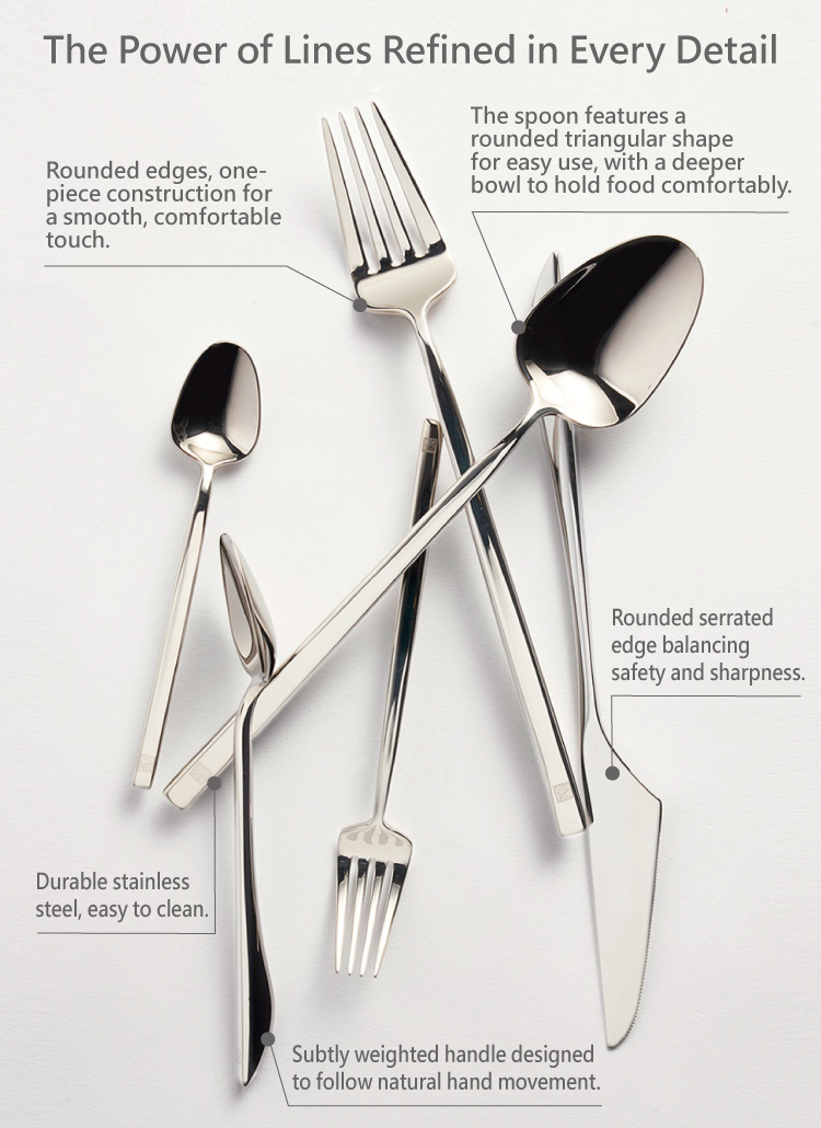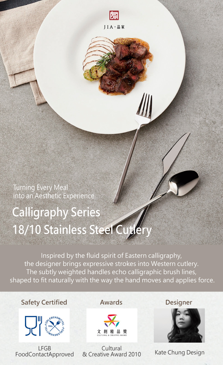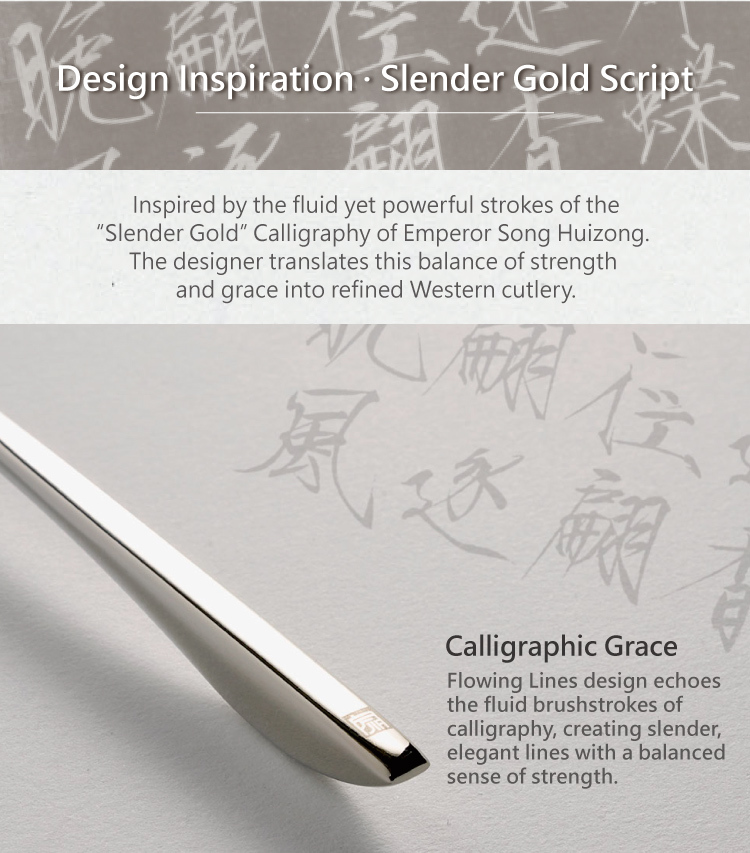 Inspired by the fluid spirit of Eastern calligraphy, the designer brings expressive strokes into Western cutlery.