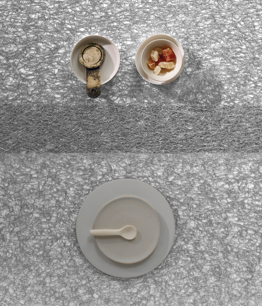 At first glance, Metallic Lace appears to be metal; however, upon closer inspection it reveals itself to be a highly refined textile. The open, abstract netting is metallicized to form the gleaming surface and thus becomes a truly contemporary lace.