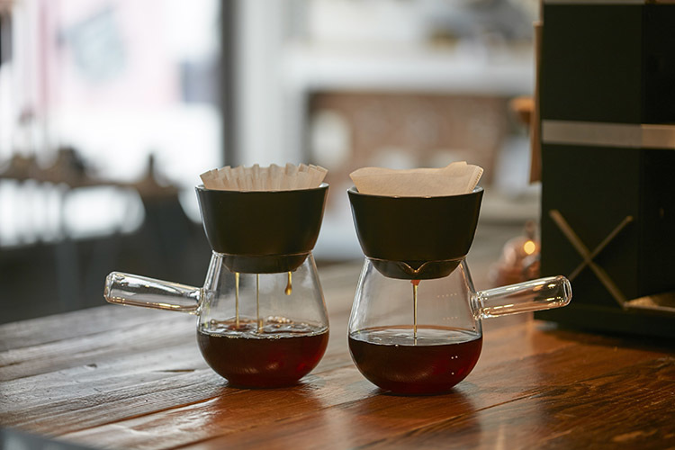 1. Pour water slowly over the coffee, starting from the center to the outer rim of the grounds and moving in a steady spiral. As hot water first hits the grounds creating a blossoming effect. Give the coffee around 30 seconds to drip before moving on to the second pour.