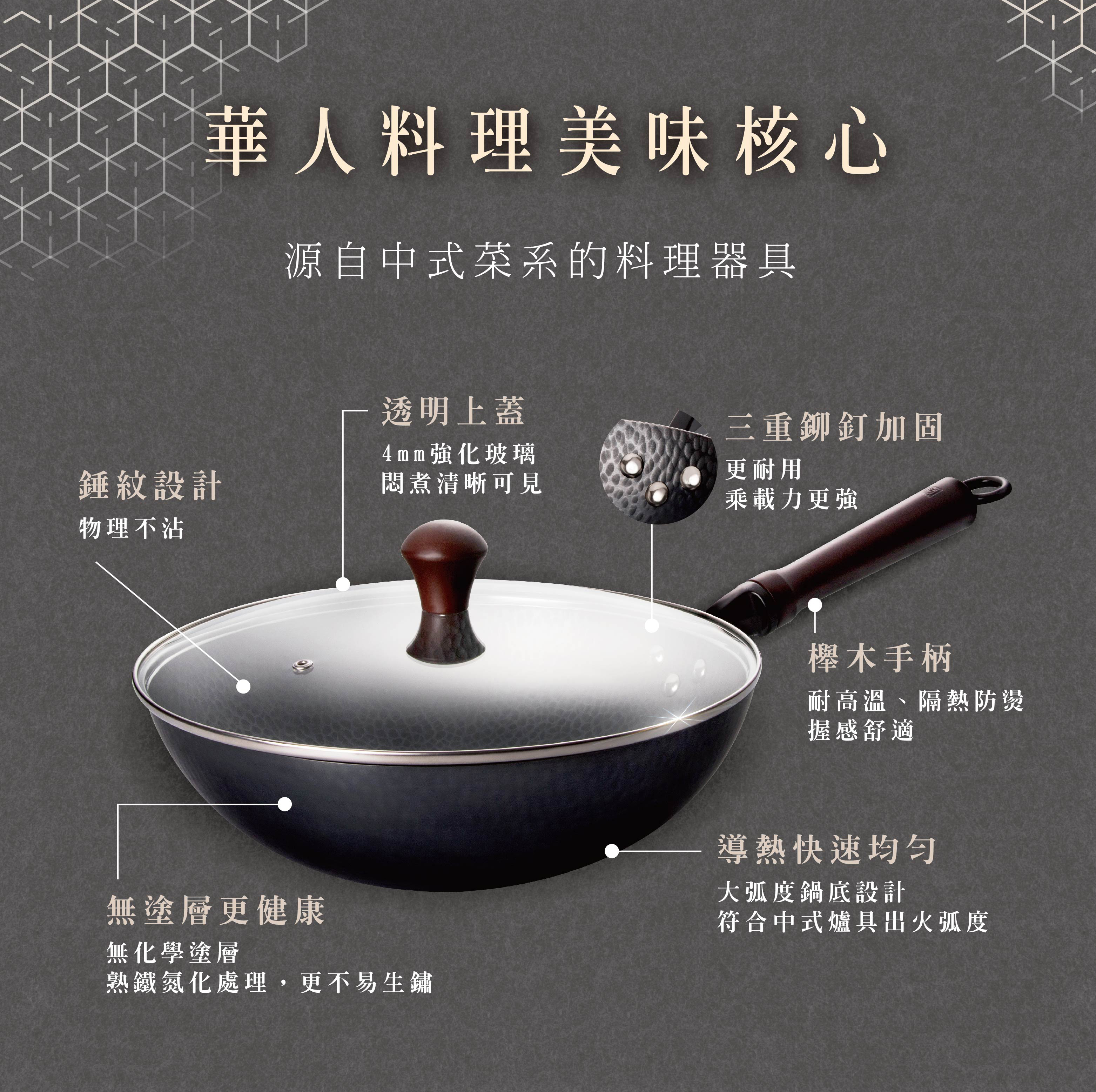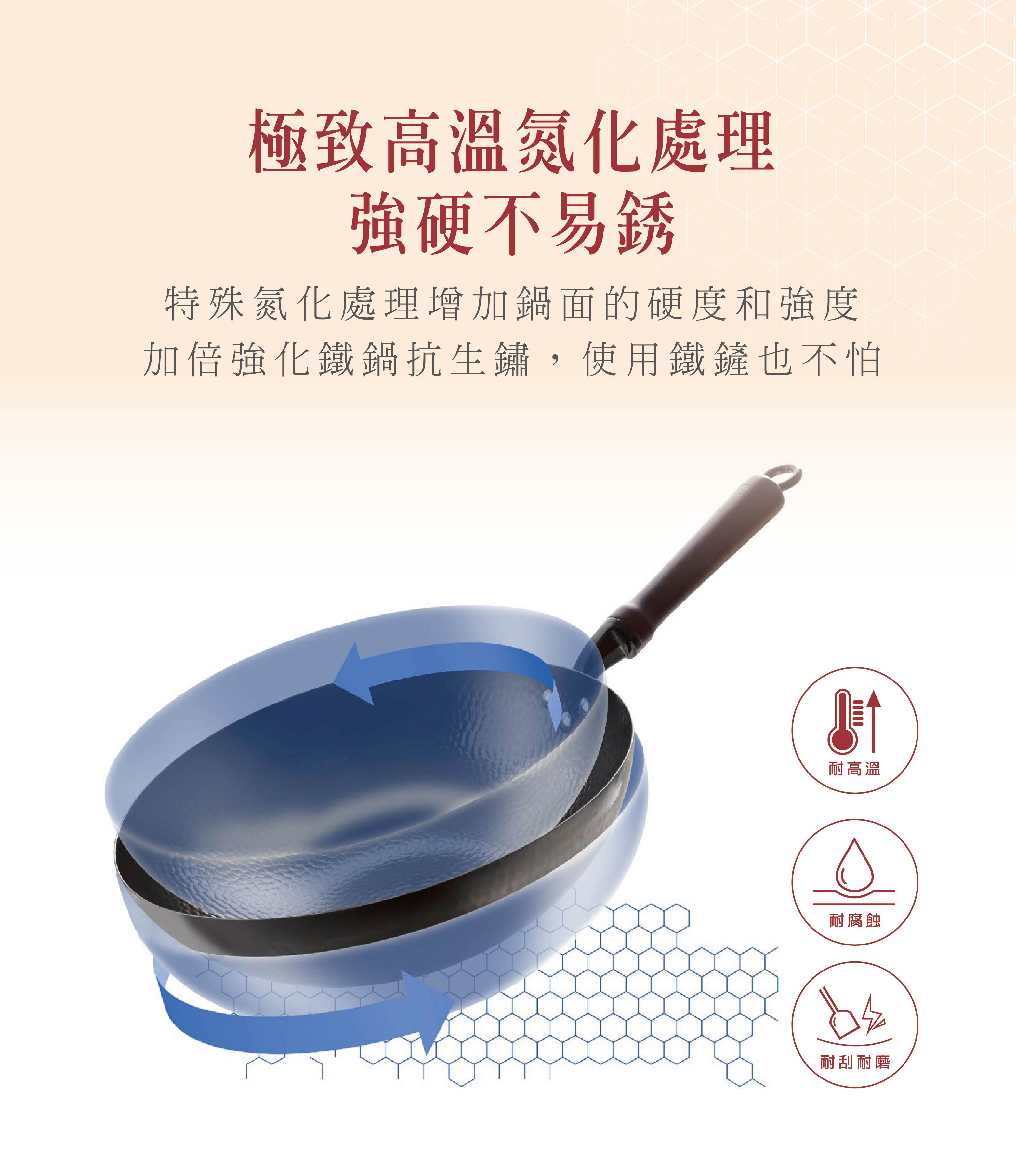 2. Nitriding treatment, which makes the wok less likely to rust and no complicated seasoning process before use.