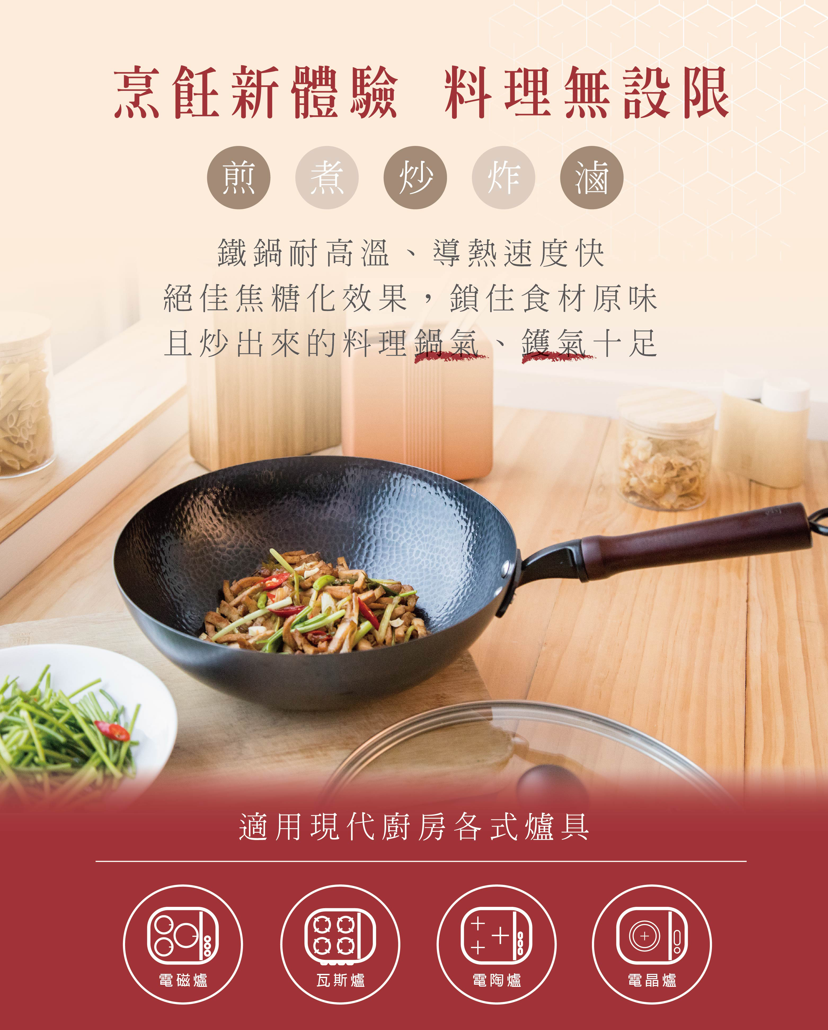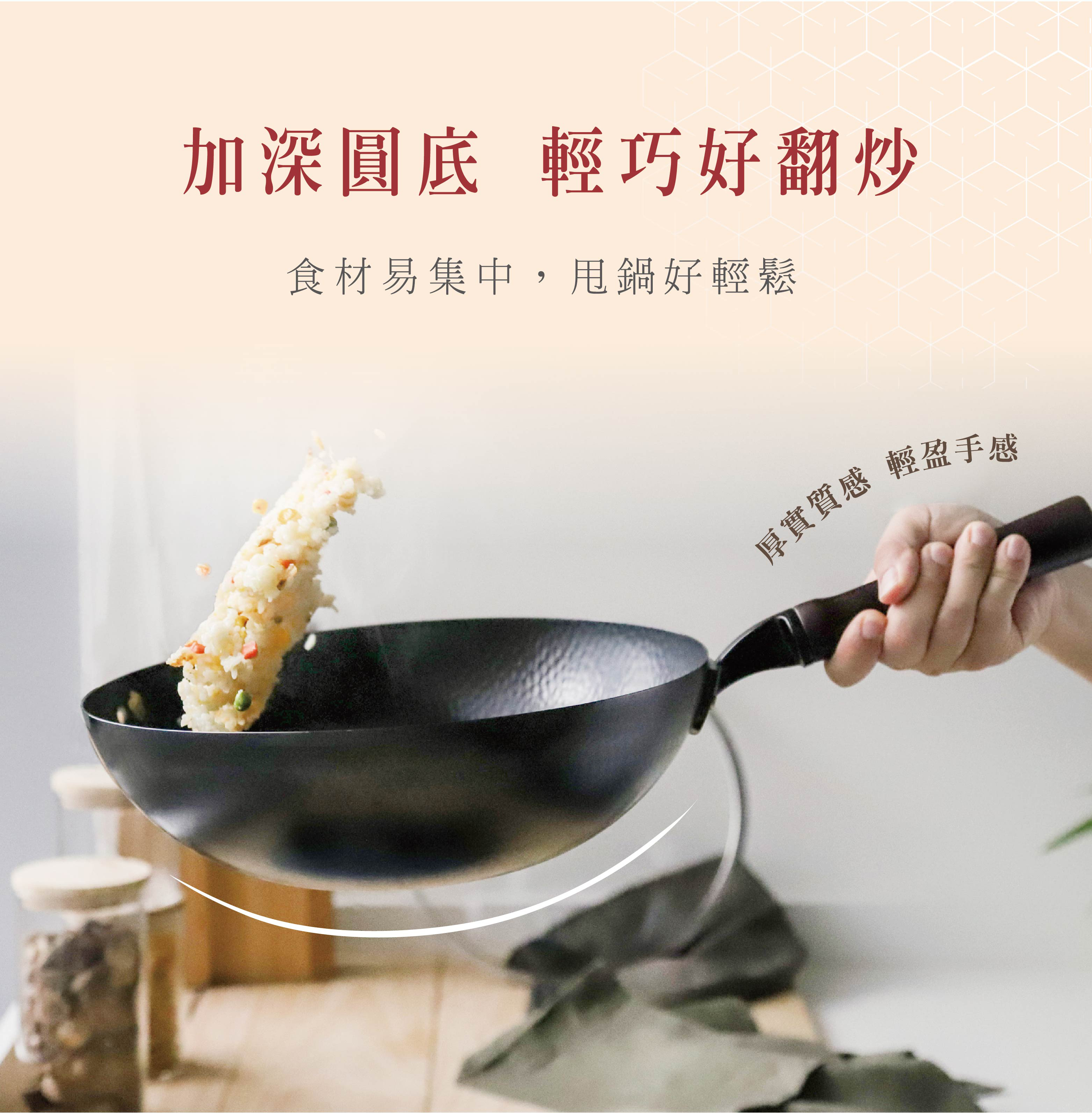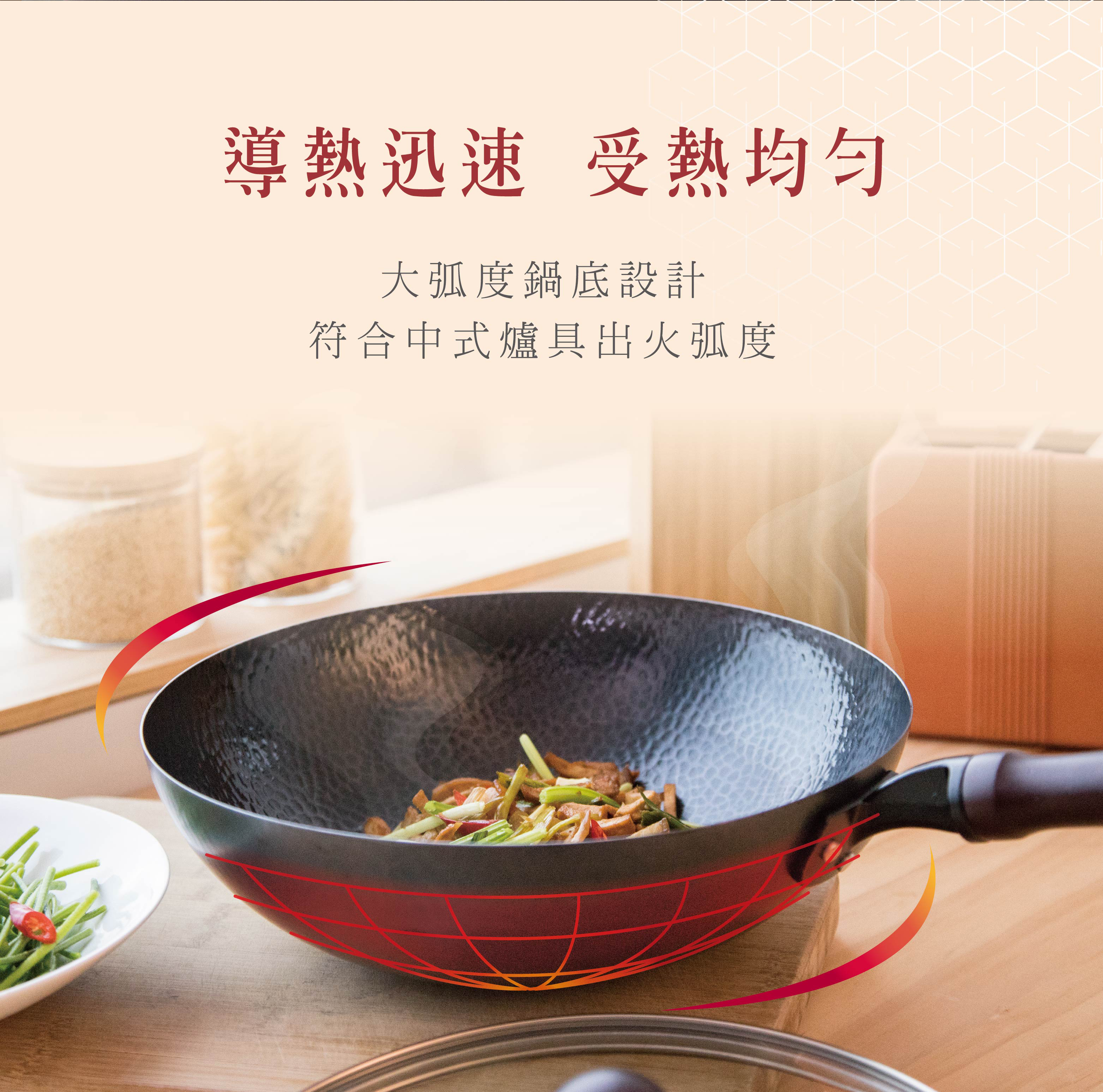 Wok is fantastic for stir fry which is one of the most essential cooking style in Chinese cuisine. The JIA Companion Wok is made of carbon steel with no chemical coating and features fast heat transfer. The wok has a large radius with flat bottom which is suitable for transitional gas stove as well as modern IH stove, electric stove and ceramic stove. The wok features bump texture on the inside, which creates air pockets to reduce overall surface touching the food. resulting in a naturally non-stick wok.