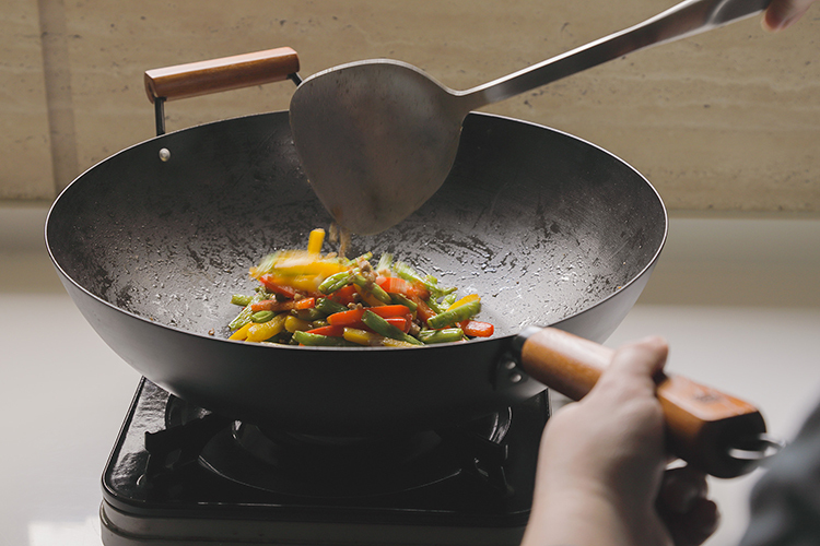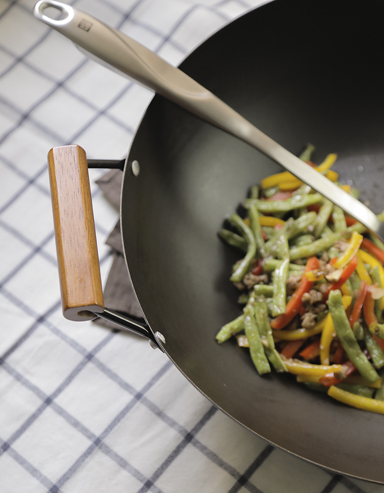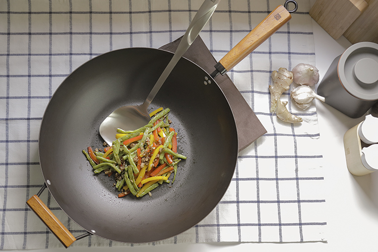 Wok is fantastic for stir-fry, which is one of the most essential cooking styles in Chinese cuisine. The JIA Carbonized carbon steel wok is made of Carbonized carbon steel, which requires no preheating during the seasoning process. This is the modern way to season the wok which produce no fume. It is made with no chemical coating and features fast heat transfer. The wok has a large radius with flat bottom which is suitable for transitional gas stove as well as modern IH stove, electric stove and ceramic stove. Resulting in a naturally non-stick wok.