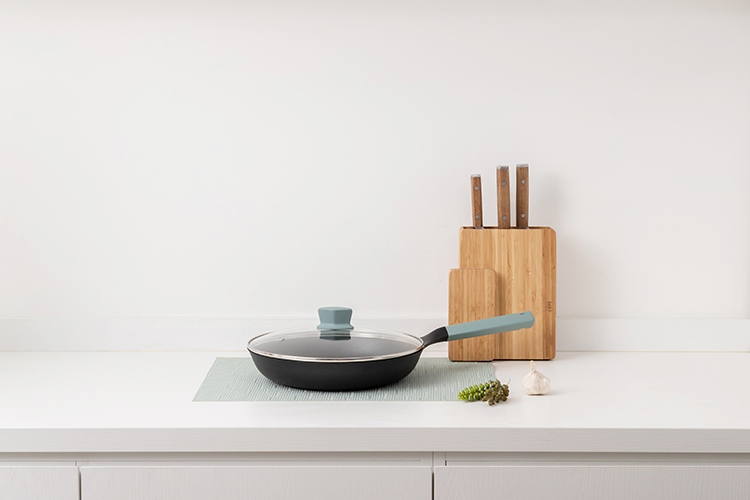 Made with aluminum brass which features fast heat transfer, ultra light weight and Greblon C3+PEEK non-stick coating, which is PFOA & PFOS free, the JIA Companion non-stick cookware is perfect for anyone who wants a cookware that is easy to use and easy to care for. The unique diamond shaped handle fits well inyour hand. This cookware set is truly your best cooking companion.