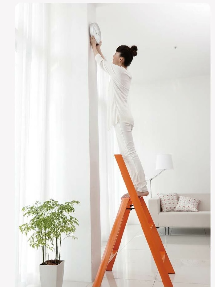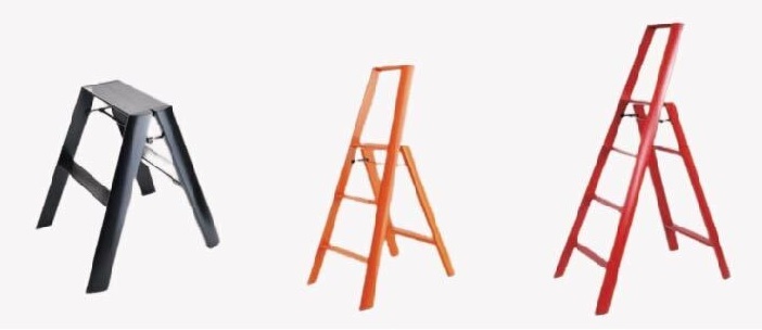 When opened, they can very well be the stool you sit on to tie your shoes, or the extra chair needed at a meeting. Place a plank in between two step stools to make shelves, a table or a shop’s display. Not using it at the moment? Just leave it standing folded.