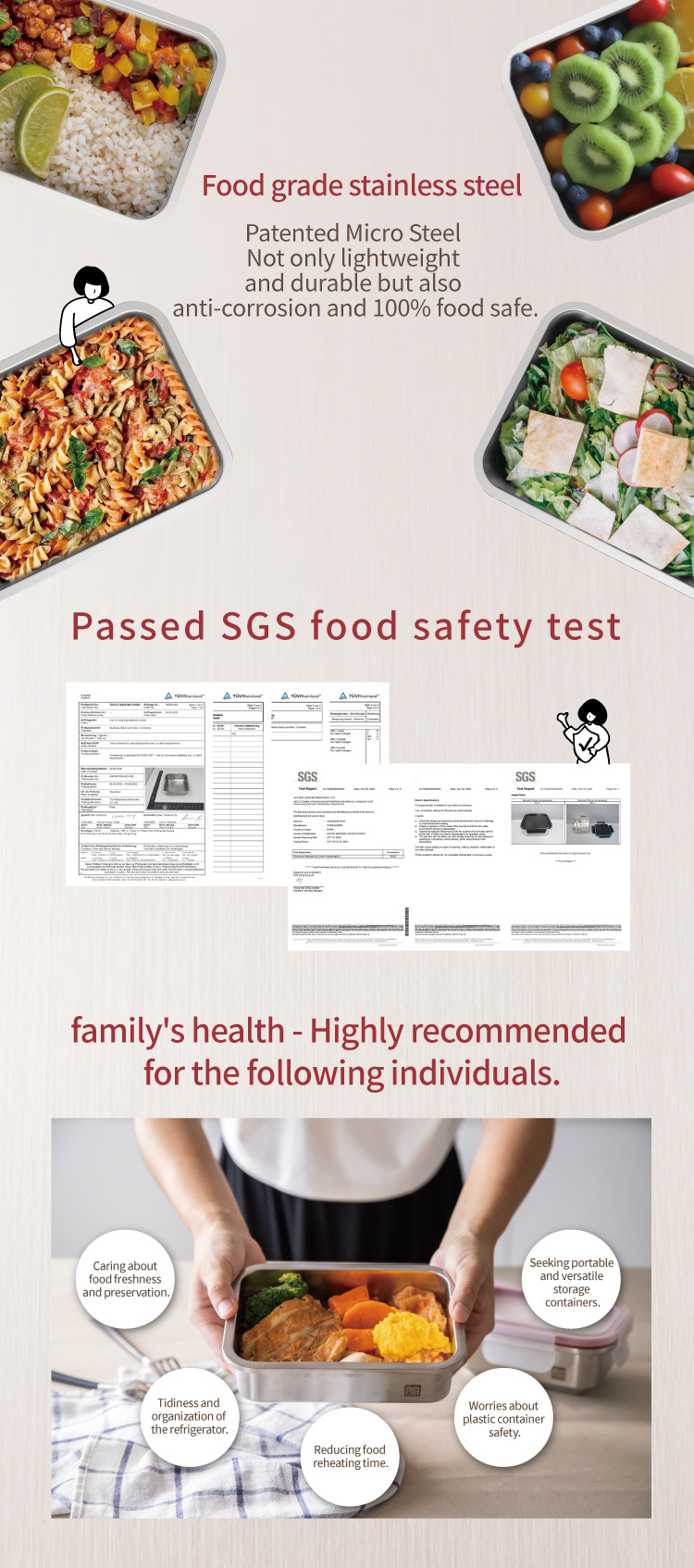 • Innovative stainless steel. Safe for microwave, oven, slow cooker etc…