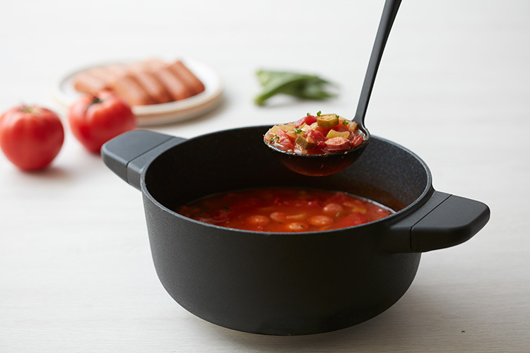 Made of heat-resistant nylon material for non-stick pans and will not scratch the coating.
