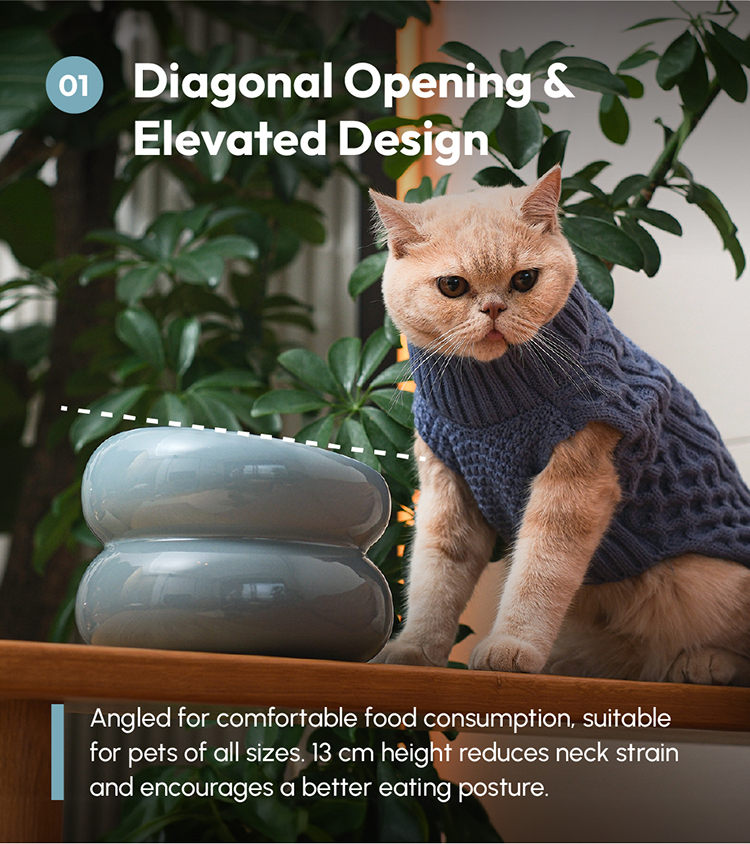 Angled design offers a comfortable eating posture, with a raised base to support your pet’s spine. Smooth, curved interior is easy to clean, and the wide, stable base prevents slipping or tipping—making every meal safe and stress-free.