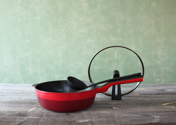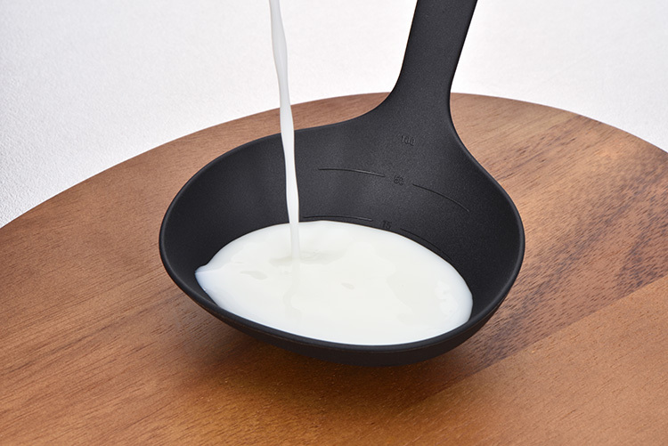 Made to be used with the Remy Pan Plus with Lid, this Remy Ladle is produced and designed in Japan. Made from charcoal-gray nylon with a silicone grip and tip, this ladle has measurement lines from one tablespoon to half a cup, eliminating the need for multiple measuring cups. Use it to measure your ingredients, ladle out soup, sauces, and add pasta water to your tomato sauce and more. It has a magnetic stainless steel core so it will attach to the Remy Pan’s magnetic handle for convenience while cooking and also space-saving storage.