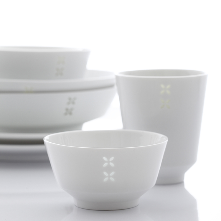 Rice grain porcelain is a traditional Chinese porcelain technique dating back to the Ming dynasty (1368AD). It is characterized by a refined and semi translucent finish. Adopting this traditional craftsmanship, RICE plays with the subtle contrast between glazed and un-glazes finishes to create a set of daily dinnerware with a delicate sophistication.