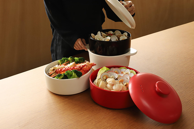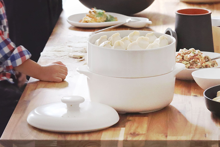 1. Glazed stoneware features a perfectly smooth and pore-less surface. All the steam is able be to be kept inside the steamer.