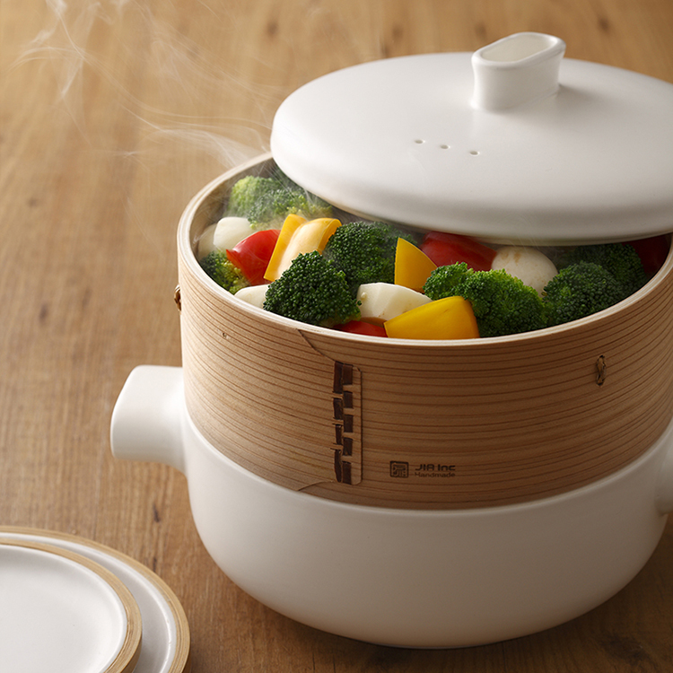 Suitable for Eastern and Western cooking, this simple and practical Steamer Set is a versatile food steamer and stewpot that enables steam and stew foods simultaneously. The Steam Poacher, paired with the original Steamer Set offering a range of exciting new culinary possibilities.