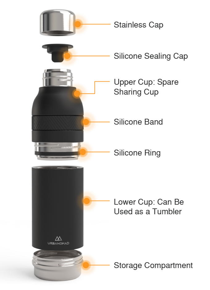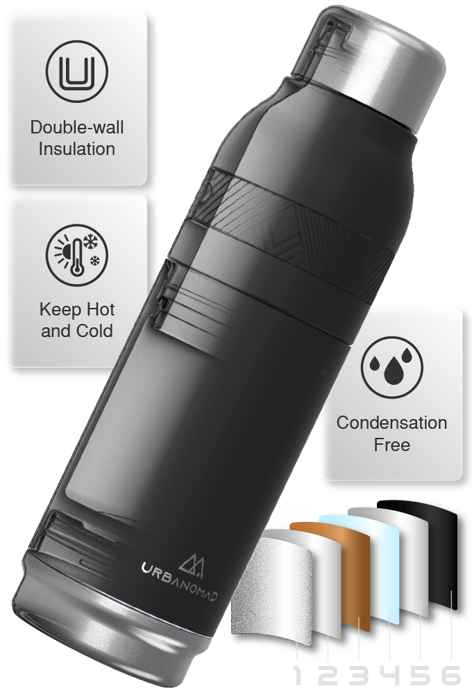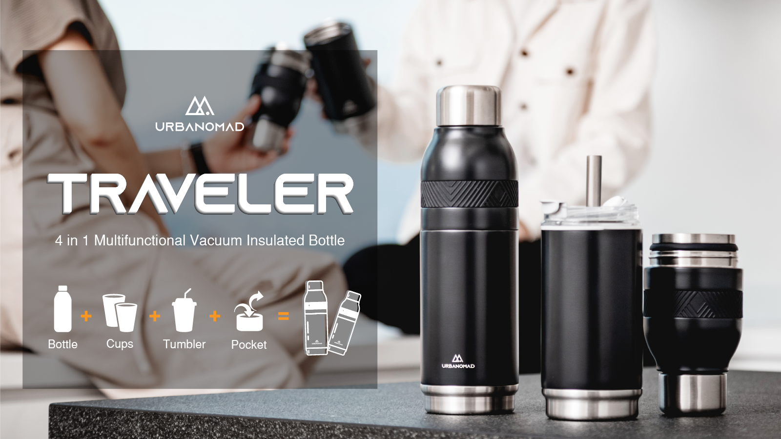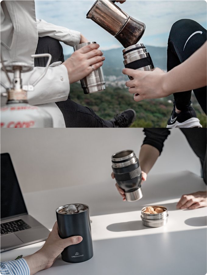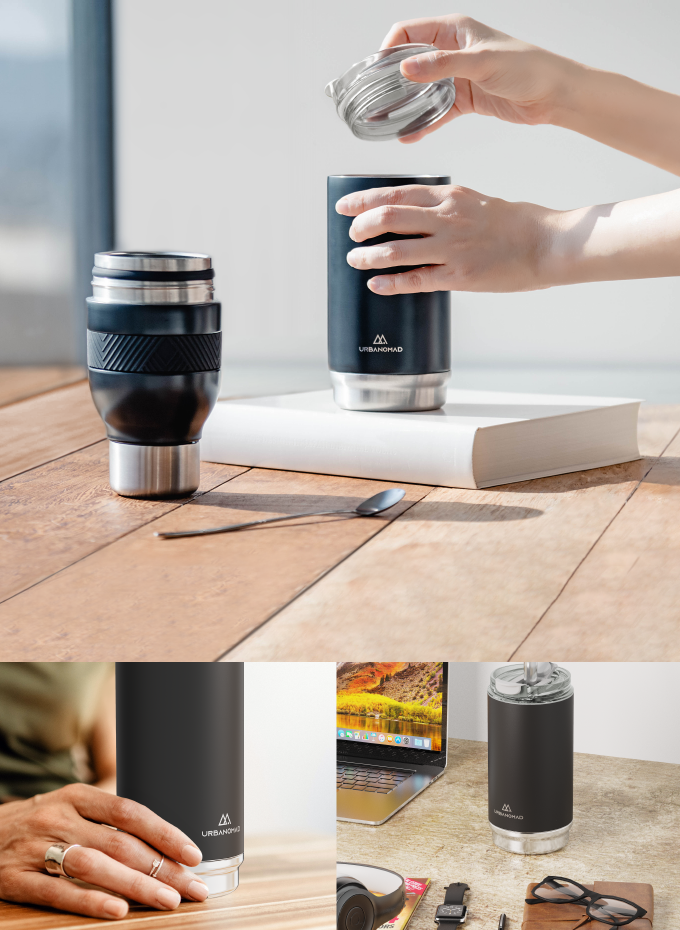 For those who demand eco-friendly design without compromising on style or functionality, meet URBANOMAD TRAVELER. Embrace the 'less is more' philosophy. Say goodbye to buying numerous bottles and cups. One URBANOMAD TRAVELER is all you need: a thermal bottle, two sharing cups, and a stylish tumbler for on-the-go convenience.
