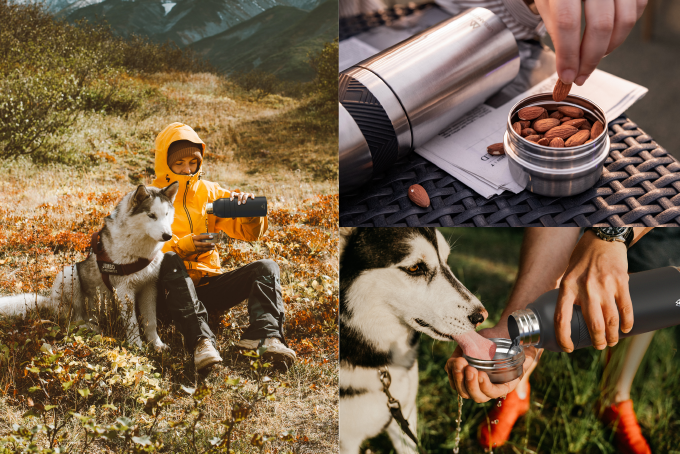 Traveler,a multi-functional bottle with storage space for snacks or small items. The bottle disassembles for easy cleaning and even doubles as 2 cups for sharing.