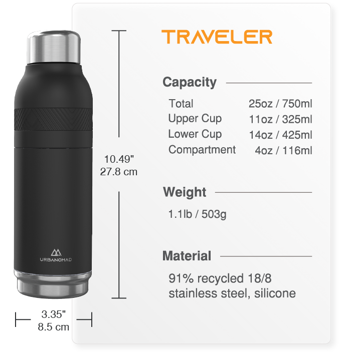 Designed for adaptability, the URBANOMAD TRAVELER comfortably fits in most cup holders and bag compartments, making it the ideal choice for all modes of travel.