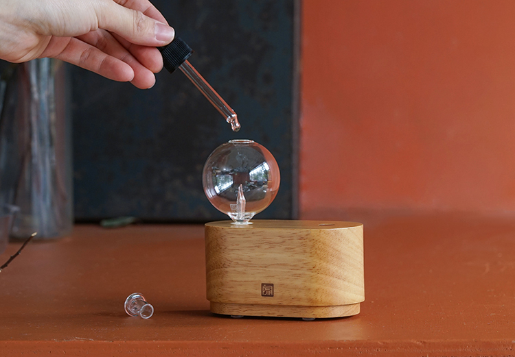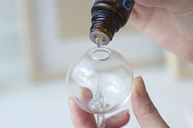 1.使用時沿玻璃球口滴入15~20滴純精油,並蓋上玻璃瓶蓋。