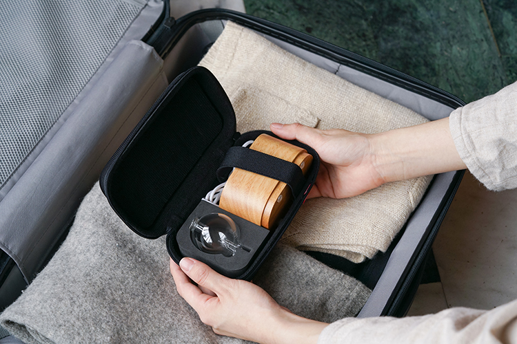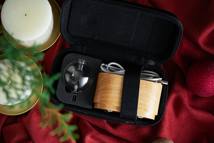 整組商品含:賞香儀玻璃球、機身、USB-C線、旅行攜帶盒、彩盒包裝、說明書