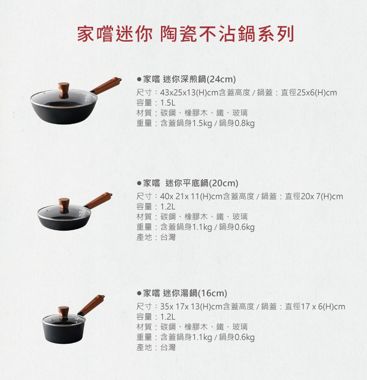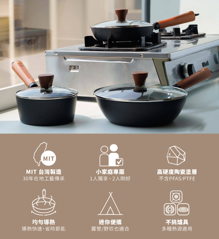 適合個人及小家庭的專屬鍋具,搭配客製玻璃鍋蓋,方便悶煮,輕鬆料理。