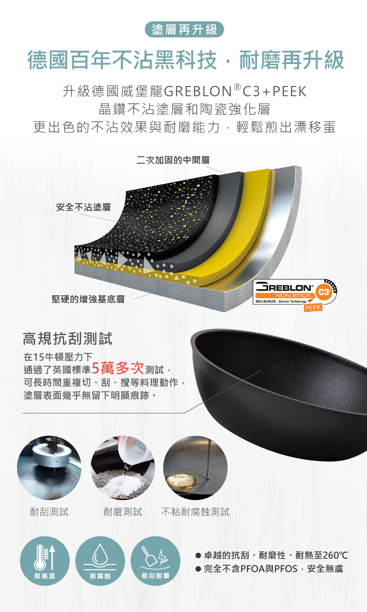 .抗磨再升級!德國百年GREBLON® C3+PEEK 晶鑽不沾塗層