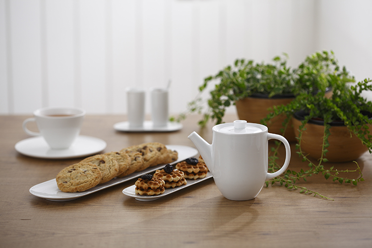 平、淨、圓潤、捨棄多餘線條,讓用者與觀者關注器皿與食物本身。設計師以老子哲學「有無相生」開始發想,簡化近至無的設計,僅於細節處做變化:平盤邊緣微微翹起,與深盤及碗內緣的弧型突起相互呼應。為求產品給人的細膩手感,更致力於生產工藝上對邊緣薄度的要求。
