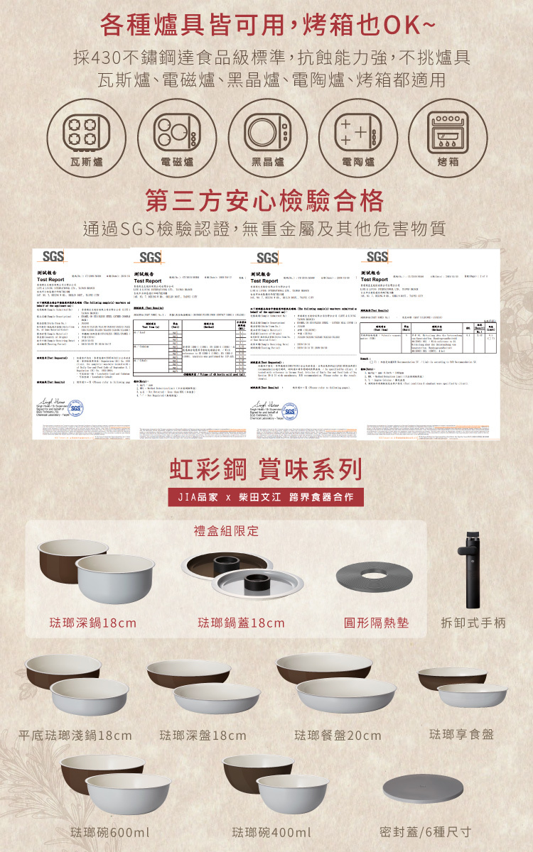 材質:琺瑯、不鏽鋼、電木、矽膠