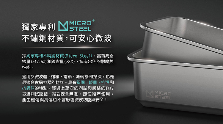 .獨家專利不鏽鋼材質(Micro Steel),安全使用微波爐
