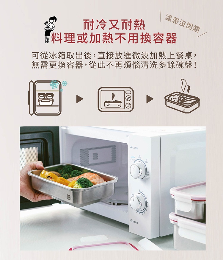 .獨家專利不銹鋼材質(Micro Steel),安全使用微波爐