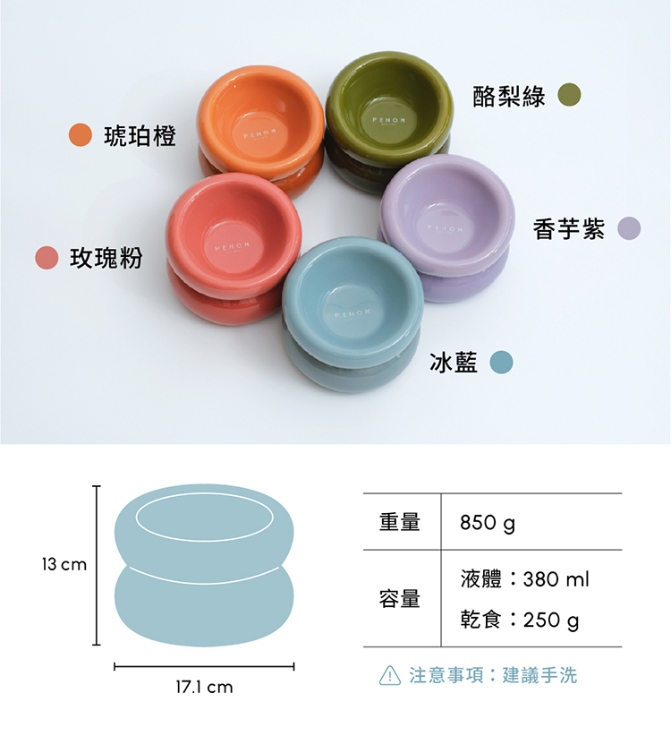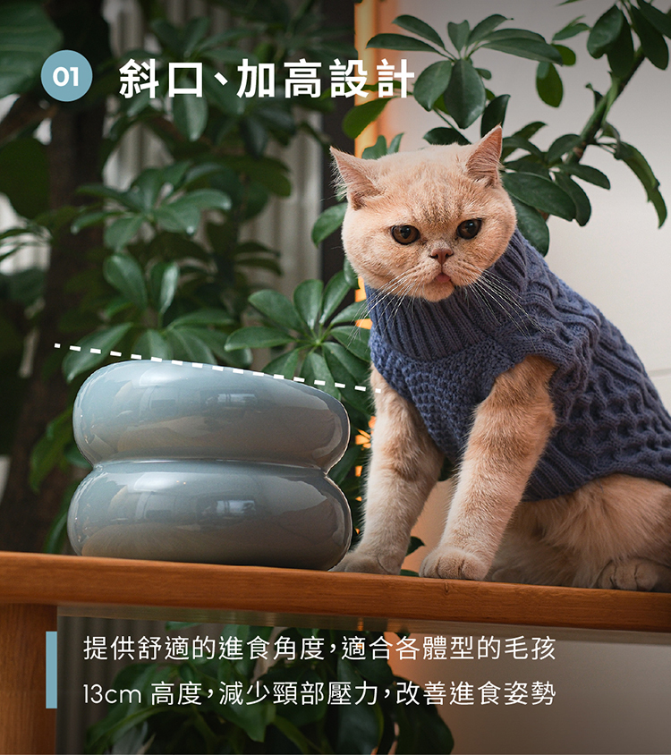 斜口設計提供舒適進食角度,底座加高保護毛孩脊椎,碗內圓弧無死角好清洗,大面積底座設計不易移位和傾倒,讓每一餐都吃得舒適又安心。五款亮麗顏色,自由搭配屬於毛孩的時尚用餐體驗。