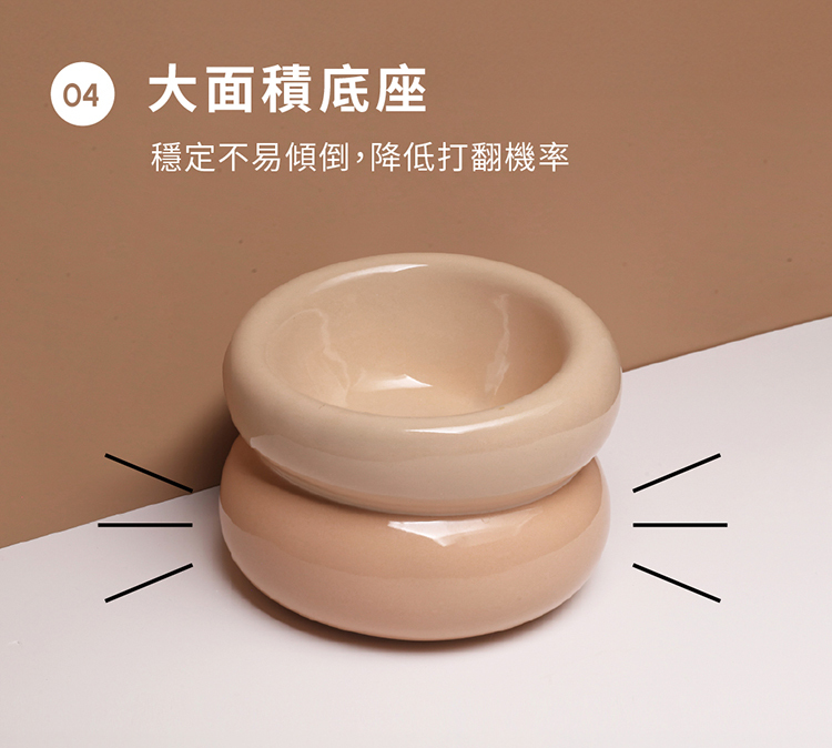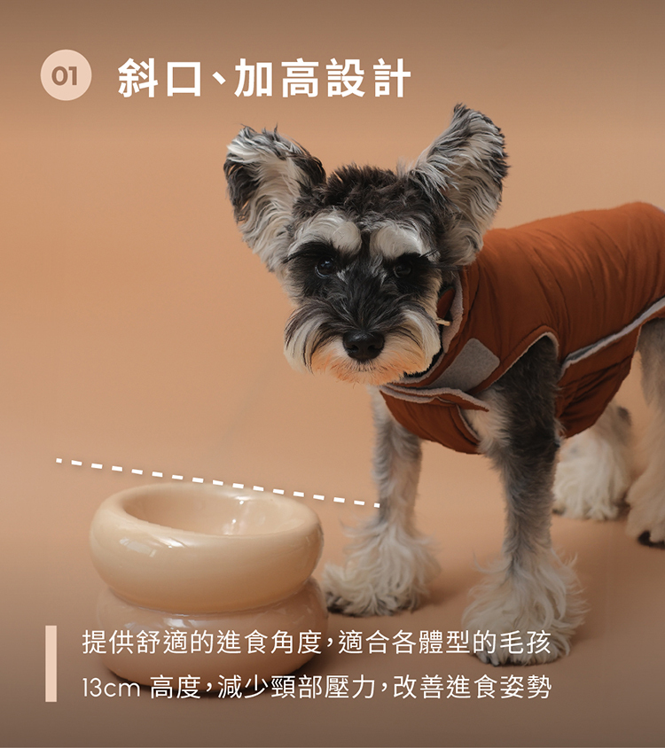 斜口設計提供舒適進食角度,底座加高保護毛孩脊椎,碗內圓弧無死角好清洗,大面積底座設計不易移位和傾倒,讓每一餐都吃得舒適又安心。五款亮麗顏色,自由搭配屬於毛孩的時尚用餐體驗。