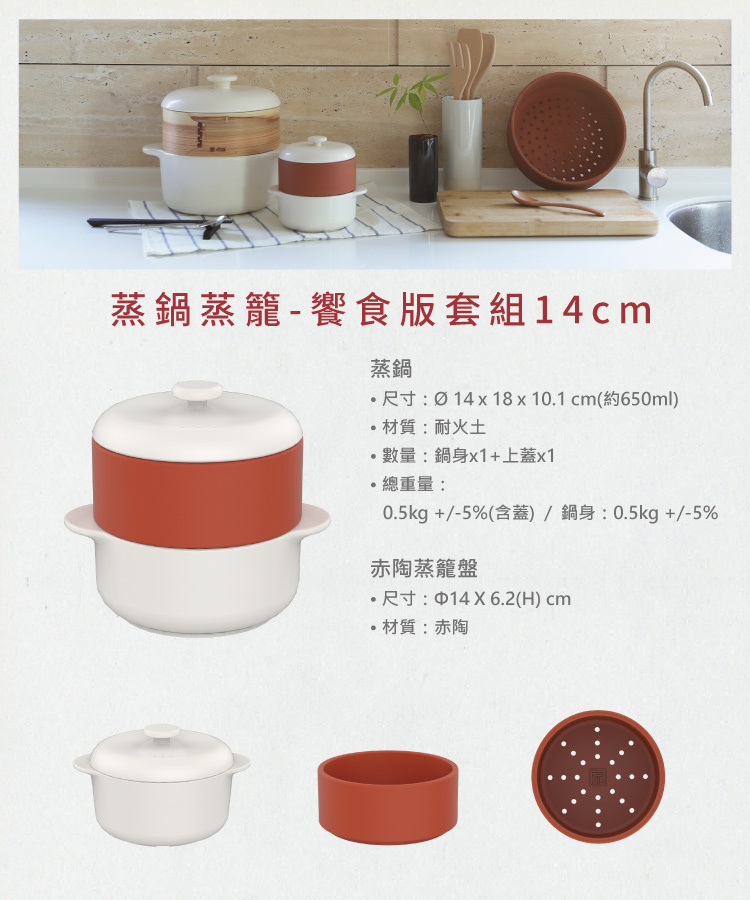 【此商品頁僅販售赤陶蒸籠盤14cm,不包含其他配件】