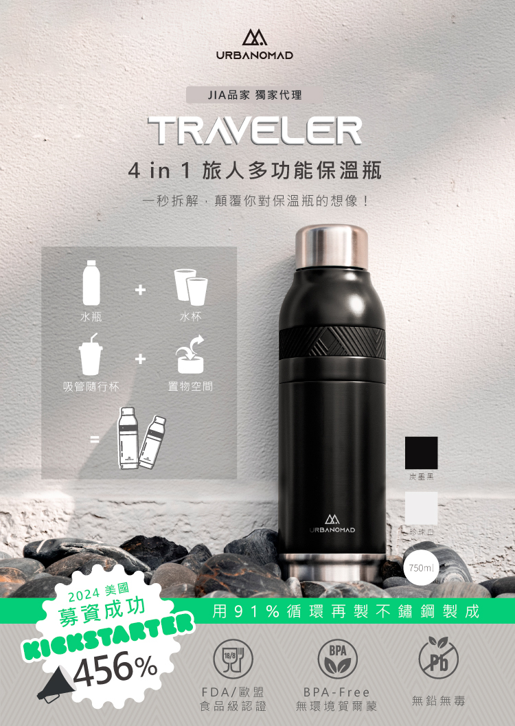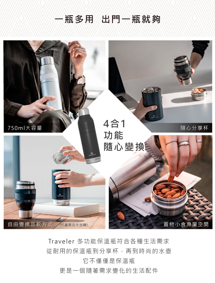Traveler 是750ml大容量保溫瓶,也是多功分享杯、保溫杯。