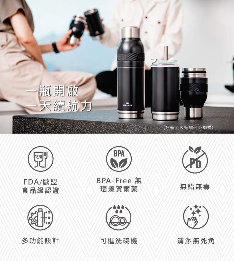 每組隨行杯蓋附回收不鏽鋼粗吸管,提升您的環保飲用體驗。