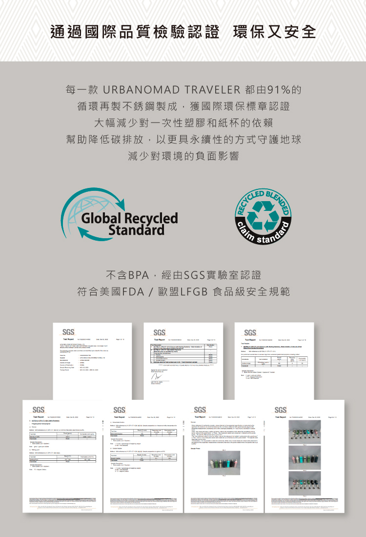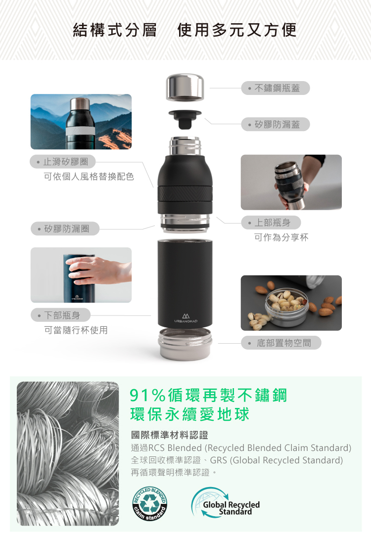 每一款 URBANOMAD TRAVELER 都由91%的循環再製不鏽鋼製成,