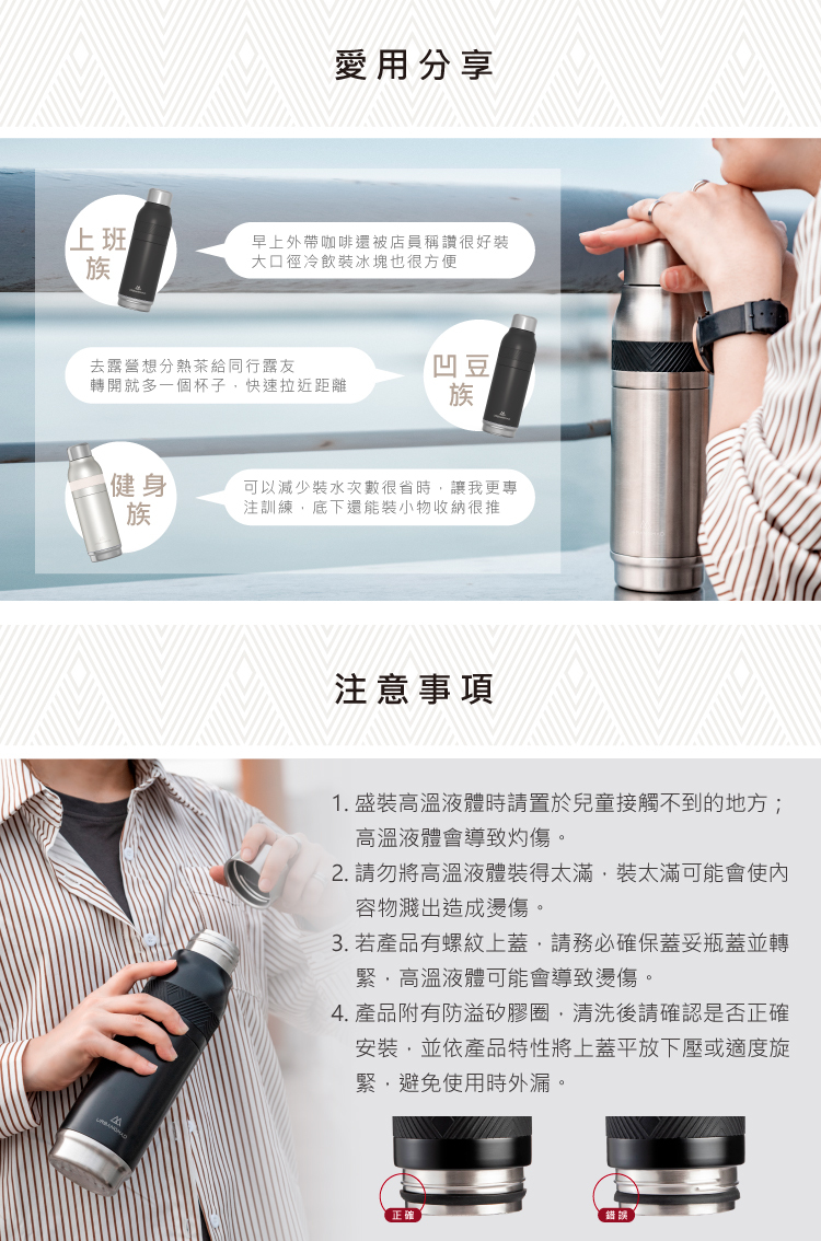3. 若產品有螺紋上蓋,請務必確保蓋妥瓶蓋並轉緊,高溫液體可能會導致燙傷。