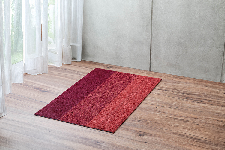 MARBLED STRIPE SHAG MAT大理石條紋系列|相鄰兩種不同色調交錯編織,MARBLED系列為垂直三色條紋玄關墊,完美呈現了繁複的紋理及層次感。「Ruby」紅寶石的瑰麗色調,呈現一種華麗而濃郁的氛圍,代表高貴、熱情與力量。