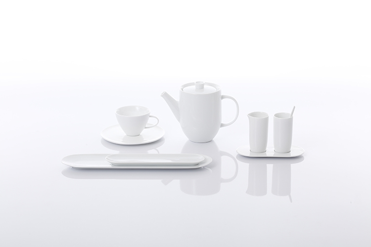 平、淨、圓潤、捨棄多餘線條,讓用者與觀者關注器皿與食物本身。設計師以老子哲學「有無相生」開始發想,簡化近至無的設計,僅於細節處做變化:平盤邊緣微微翹起,與深盤及碗內緣的弧型突起相互呼應。為求產品給人的細膩手感,更致力於生產工藝上對邊緣薄度的要求。