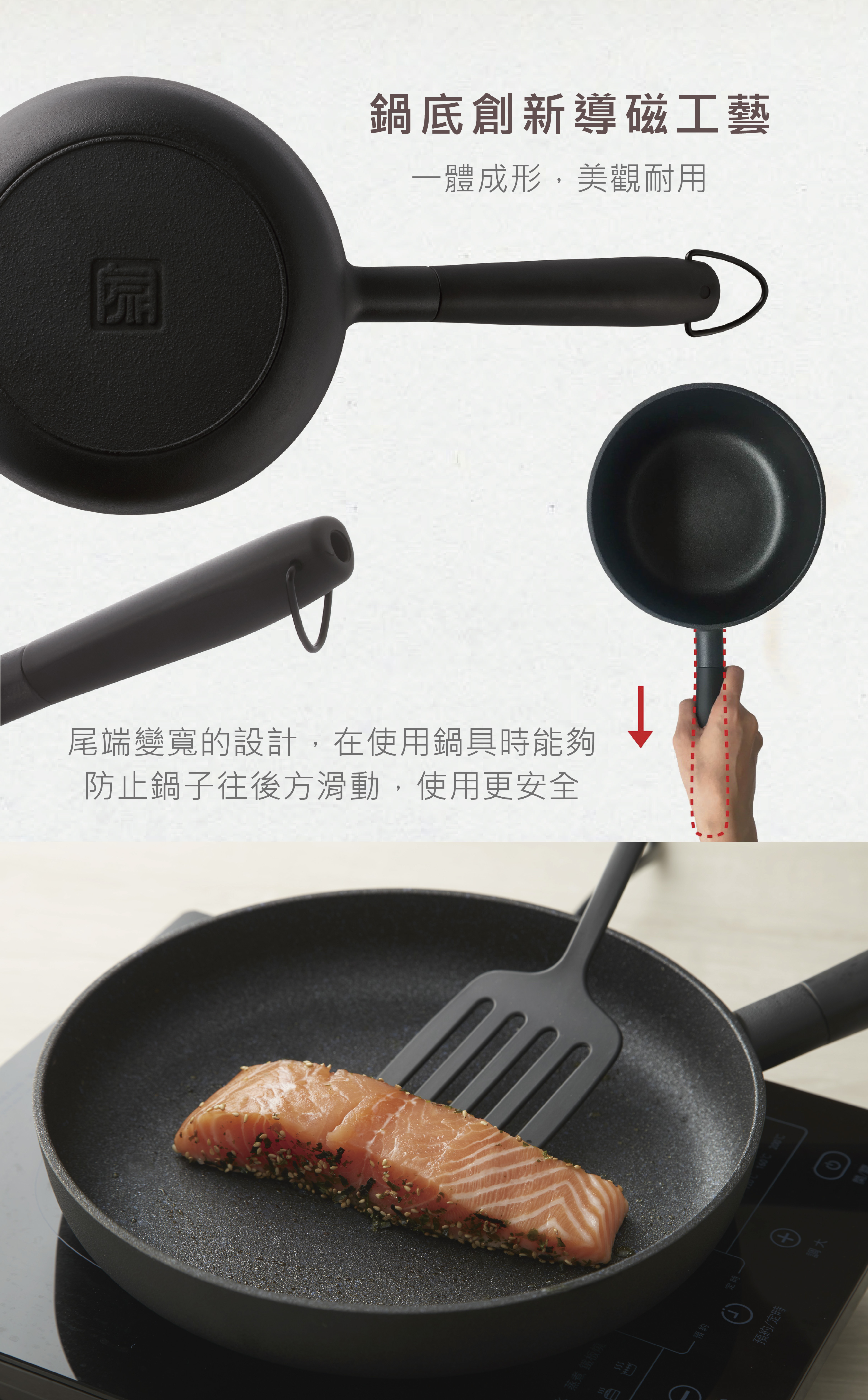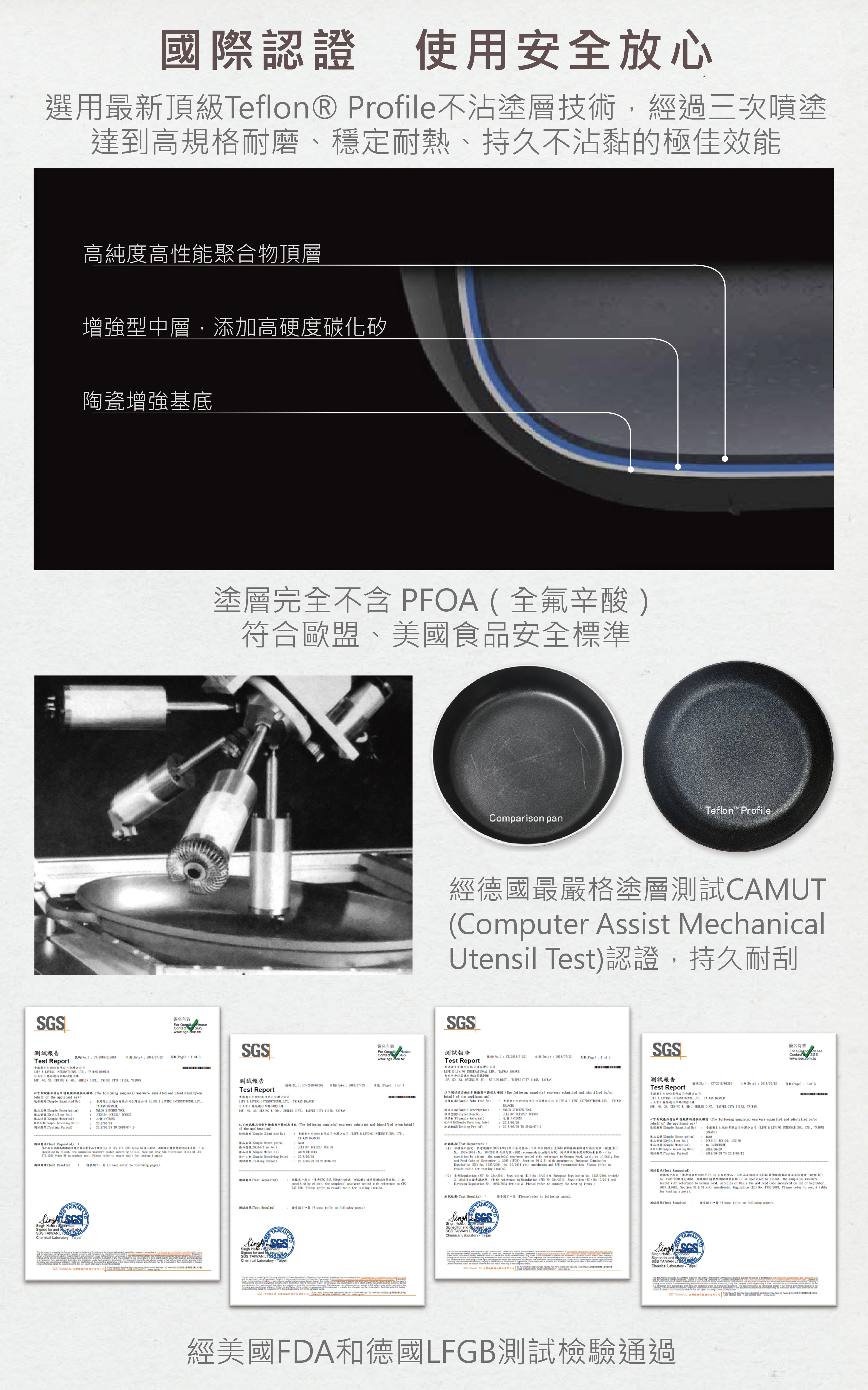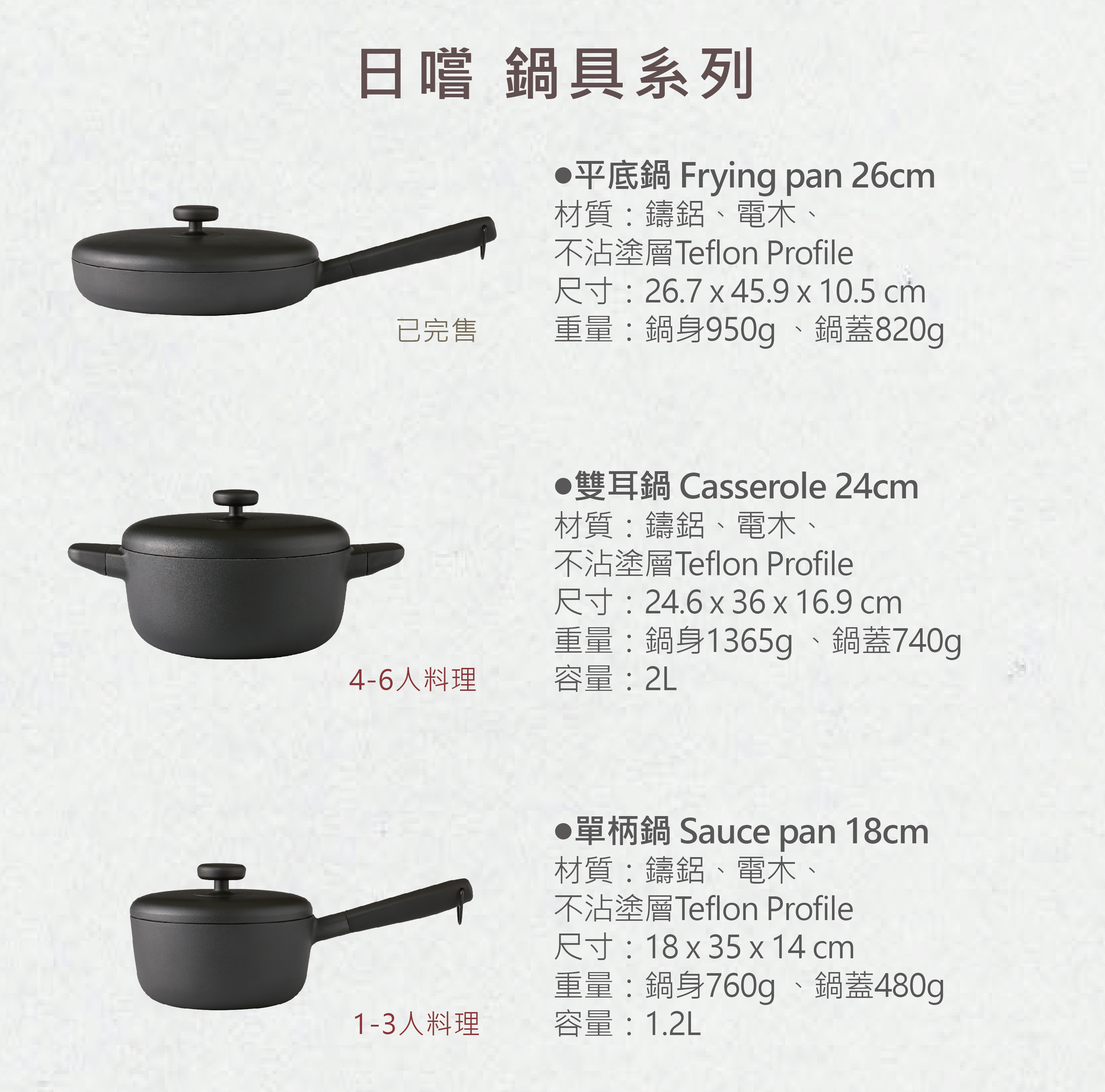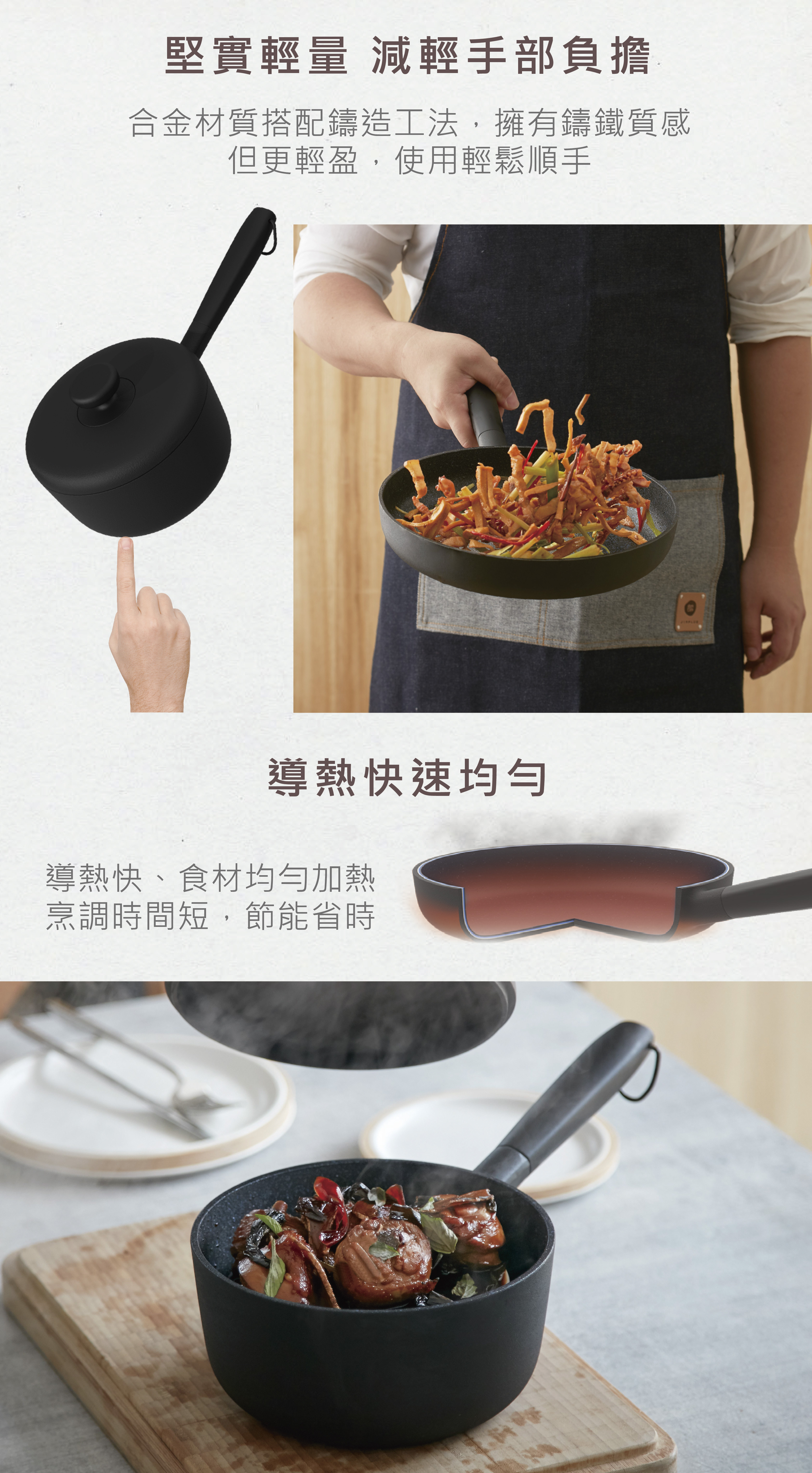 材質:鑄鋁、電木、不沾塗層(經德國塗層測試CAMUT認證)