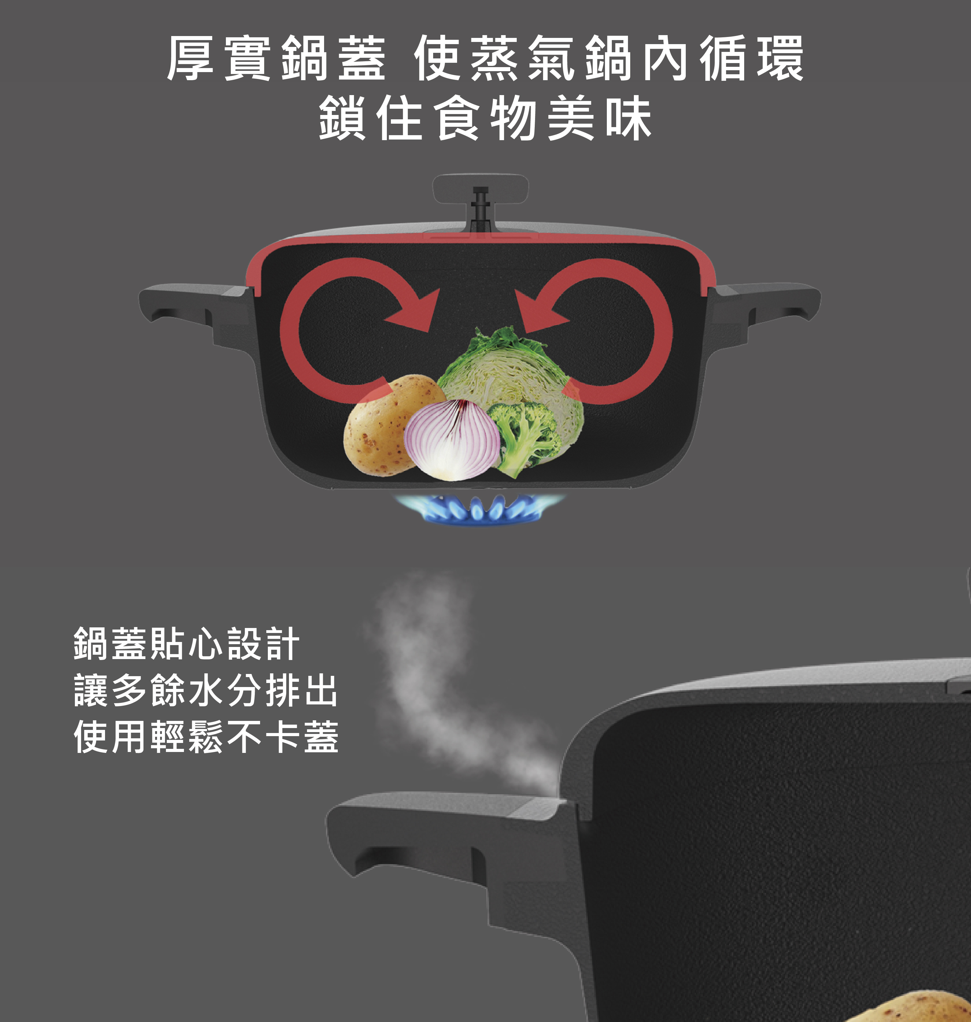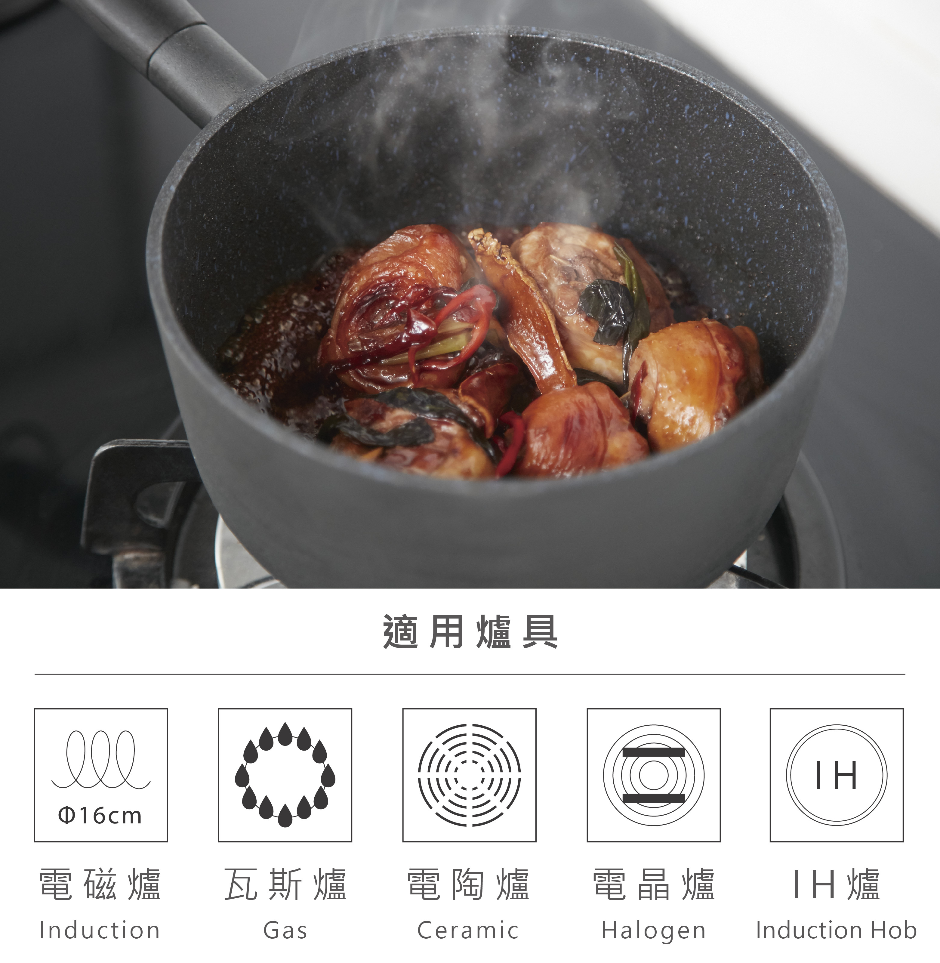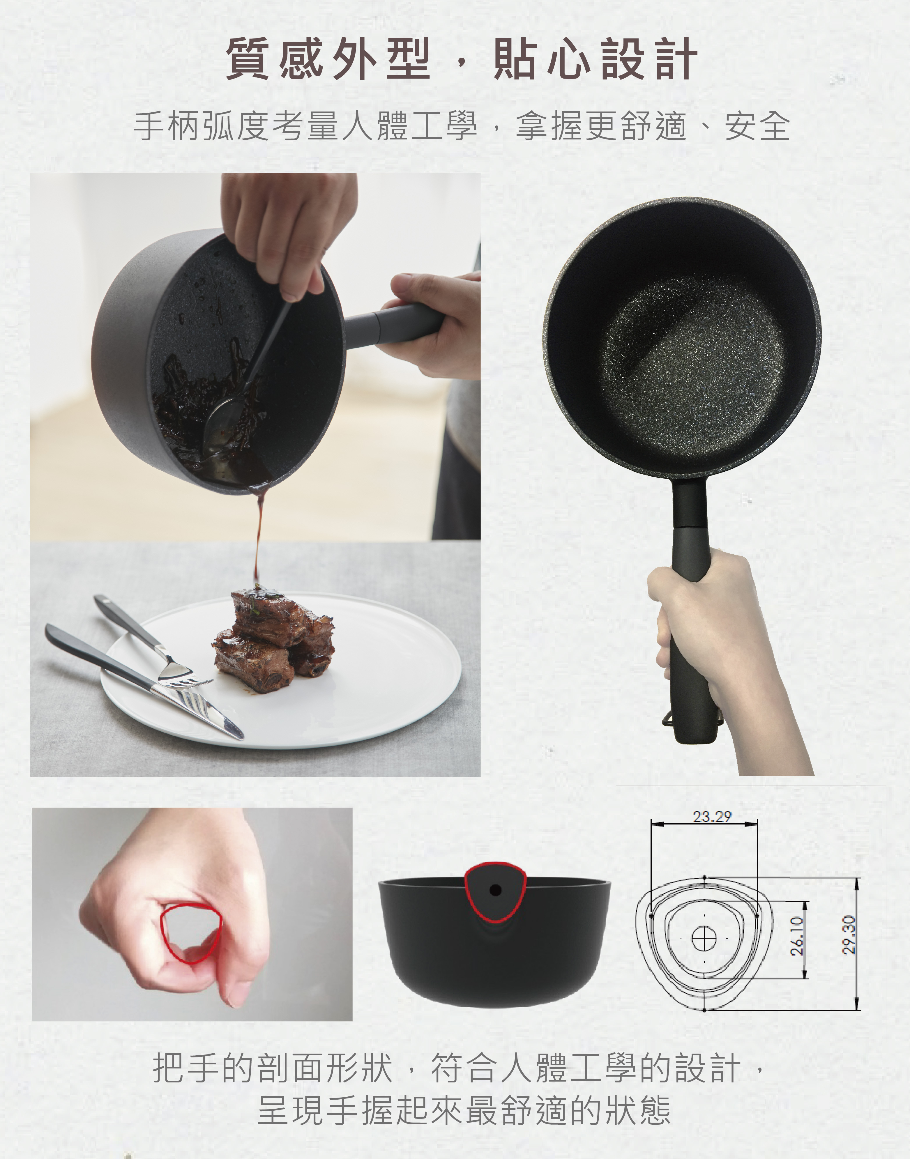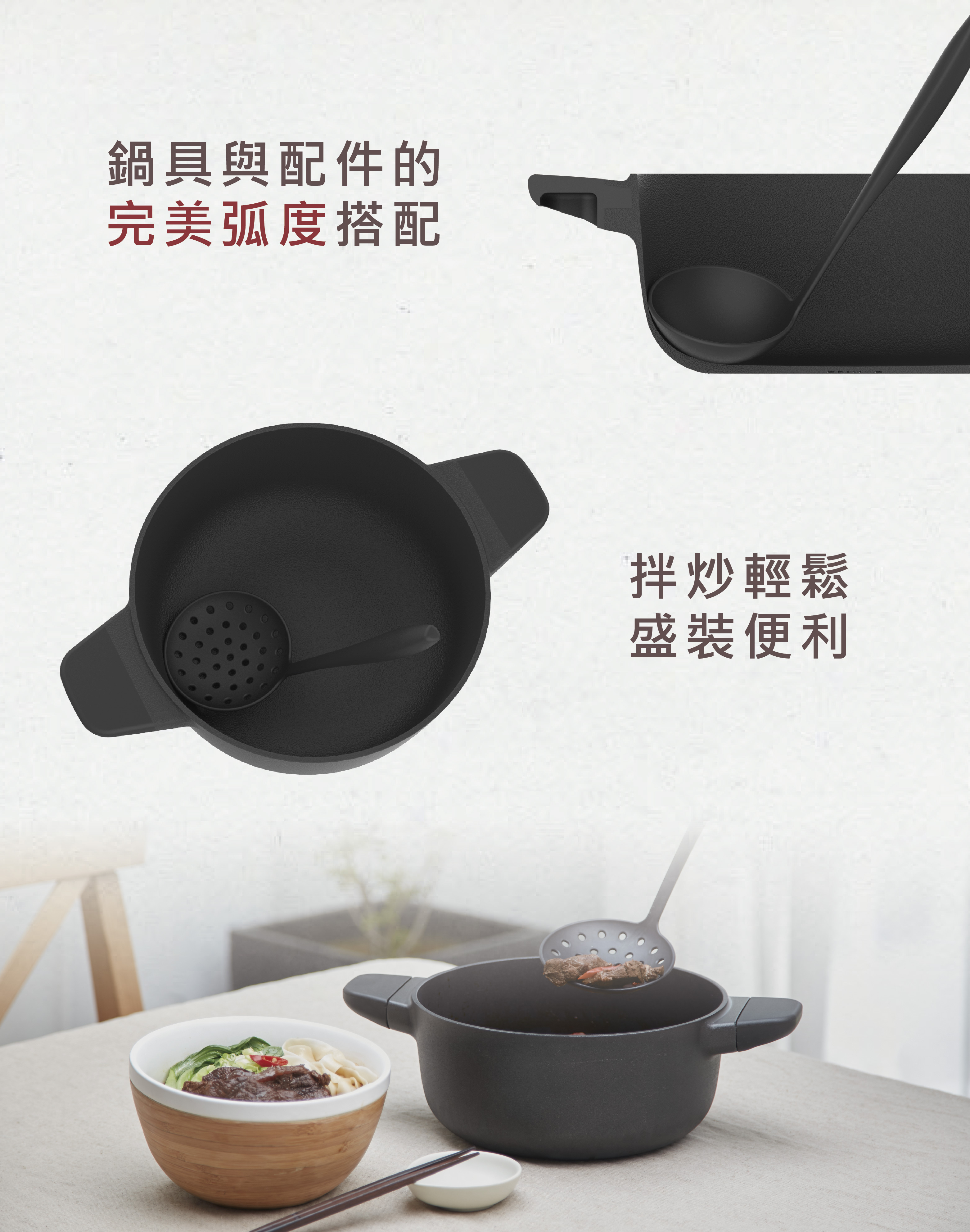 材質:鑄鋁、電木、不沾塗層(經德國塗層測試CAMUT認證)